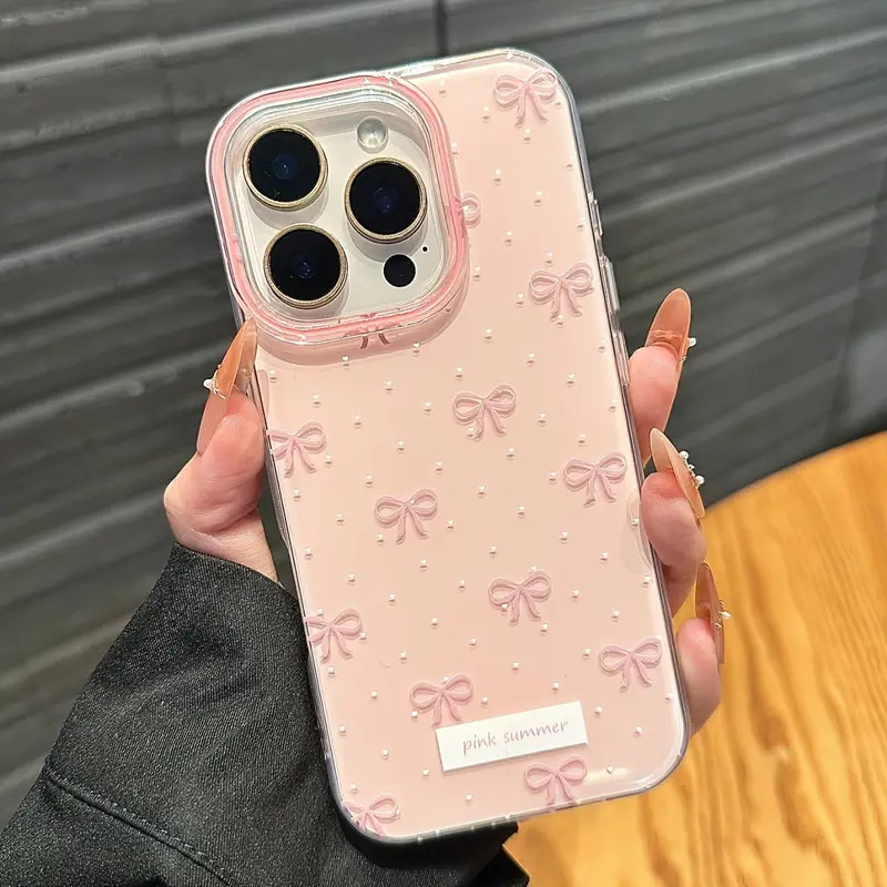Capinha Capa Material transparente TPU Estampa de laço rosa IPhone XR 11 12 13 14 15 16 17 Pro MAX 14 15 16 Plus