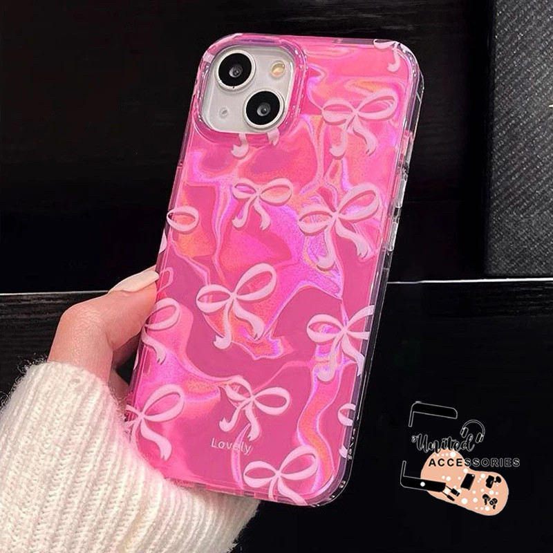 Capinha Capa Para iPhone 17 Ar 13 11 12 14 15 16 Plus Pro Max XR Adorável Arco Nó Ondulação Brilho