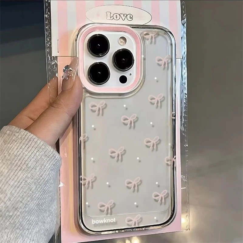 Capinha Capa Para Redmi A2 A3 12 13 15 POCO X3 X4 X5 X6 Note 11 12 Transparente À Prova de Choque Laço rosa