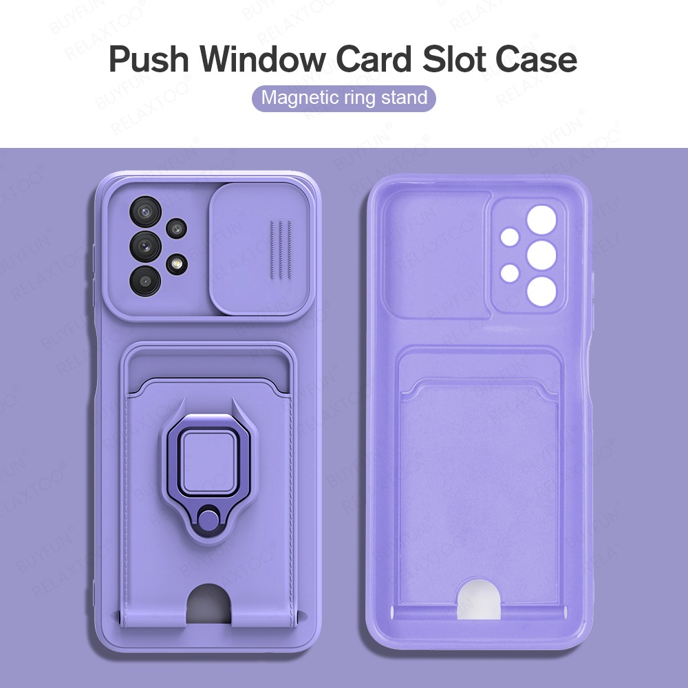 Descrição do produto em inglês após português Estojo Para Samsung Galaxy A32 A52 A23 A33 A53 5G Capa TPU Macia Multifuncional Para Samsung A 32 52 23 33 53 Estojo à prova de choque Característica do recurso: 1.Suporte Suporte para Carro Montagem:Com placa de metal de adsorção sxrong para o montagem do carro:Com placa de metal de adsorção sxrong para o montagem do carro; Choque de almofada de força de impacto disperso; 3.Forro de microfibra macia:Evita telefone de arranhões; 4.Macio macio & Corpo Flexível:Fácil de instalar ou remover, sem agredir ou arranhar o corpo flexível:Fácil de instalar ou remover, sem danificar ou arranhar o dispositivo do telefone; 5.Rotação completa de 360 dobrável rotativa de 120 ; 6.Tampa deslizante para proteção da câmera: Quando em uso, empurre a tampa deslizante, quando não estiver em uso, empurre para trás a tampa deslizante para proteger melhor a câmera; 7.Ligue até um cartão de uma só vez para conveniência máxima de todos os seus essenciais. ************************************************** Case For Samsung Galaxy A32 A52 A23 A33 A53 5G Multifunctional Soft TPU Cover For Samsung A 32 52 23 33 53 Shockproof Case Feature: 1.Support Car Mount:With sxrong adsorption metal plate for the car mount; 2.360° Drop Protection:Disperse impact force cushion shock; 3.Soft Microfiber Lining:Prevents phone from scratches; 4.Soft & Flexible Body:Easy to install or remove , without damaging or scratching the phone device; 5.Easy To Grip:Full 360° rotation folding rotated 120°; 6.Sliding Cover For Camera Protection:When in use , push open the sliding cover , When not in use , push back the sliding cover to better protect the camera; 7.All Your Essentials On-the-go:Store up to one card at once for maximun convenience.