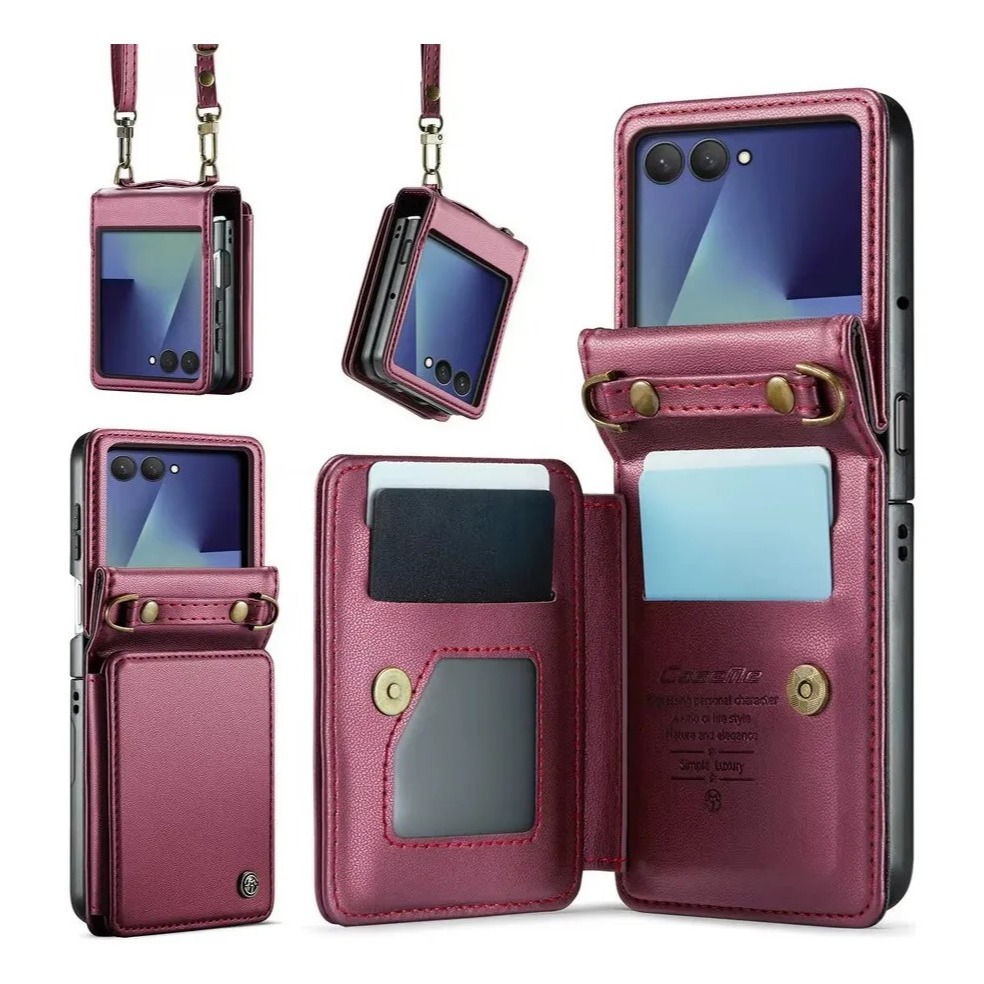 Capinha Capa Para Z Flip 7 Couro Carteira Pulseira Cordão Premium Alça Suporte