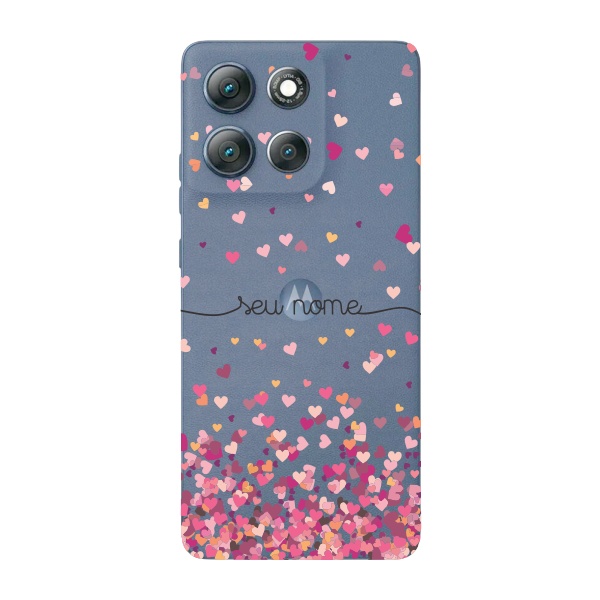 Capinha para Moto G86 Anti Impacto Personalizada - Chuva de corações rosa com nome