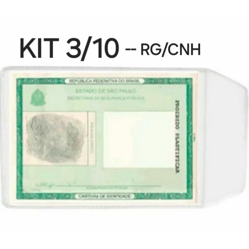 CAPINHA PLÁSTICA PROTETORA PARA DOCUMENTOS RG CPF CNH KIT 3/10