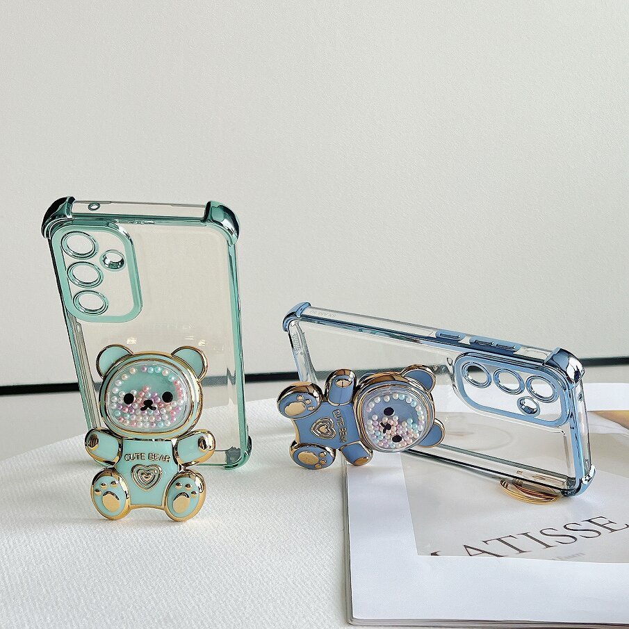 Capinha Samsung Galaxy A07/A17/A06/A16/A26/A36/A56/M56/M36/M16 Transparente Colorida Suporte Urso