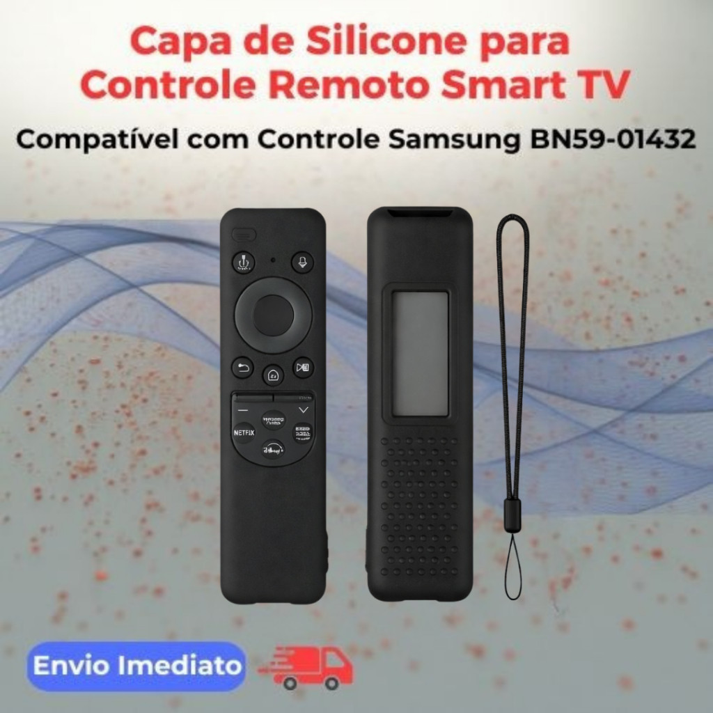 Capa de Silicone para Controle Remoto Smart TV Samsung Proteja seu controle remoto com mais segurança, conforto e estilo! A Capa de Silicone para Controle Remoto Smart TV Samsung foi desenvolvida para oferecer proteção completa contra quedas, riscos, sujeira e desgaste diário, sem comprometer o funcionamento do controle. Fabricada em silicone premium de alta qualidade, ela é flexível, resistente, durável e lavável, garantindo maior vida útil ao seu controle remoto. ✅ PRINCIPAIS BENEFÍOS ✅Proteção Contra Quedas e Impactos ✔ O silicone absorve impactos, reduzindo danos causados por quedas acidentais. ✅Textura Antiderrapante ✔ Evita que o controle escorregue das mãos ou do sofá, proporcionando mais firmeza e segurança no uso. ✅ Confortável na Mão ✔ Material macio e ergonômico, ideal para uso prolongado sem desconforto. ✅ Não Interfere no Sinal ✔ A capa não bloqueia o sinal infravermelho, garantindo funcionamento perfeito do controle. ✅Entrada Livre para Carregador ✔ Permite carregar o controle normalmente, sem precisar remover a capa. ✅Proteção Contra Sujeiras Leves ✔ Ajuda a evitar poeira, gordura, respingos e resíduos do dia a dia (como pipoca e alimentos). ✅ Resistente e Lavável ✔ Pode ser lavada em água corrente com detergente, de forma rápida e prática. ✅ Alça de Mão Inclusa ✔ Acompanha pulseira de segurança, ideal para evitar quedas durante o uso. ✅ Material Maleável e Durável ✔ Fácil de colocar e remover, sem deformar com o tempo. ✅ COMPATIBILIDADE ✔ Compatível com Controle Samsung Smart TV ✔ Modelo: BN59-01432 ✔(Verifique o modelo do seu controle antes da compra para garantir compatibilidade.) ✅ COR ⚫ Preto ✅ CONTEÚDO DA EMBALAGEM ✔ 01 Capa de Silicone para Controle Remoto ✔ 01 Alça de Mão (Pulseira) ✅Qualquer dúvida estamos a disposição no chat