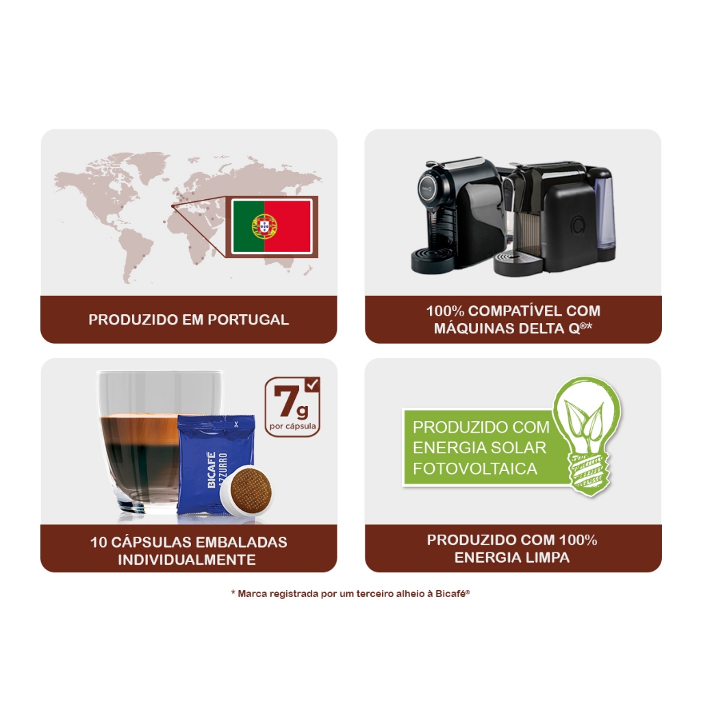 DESCAFEINADO | Leve & Aromático 10 cápsulas compatíveis com máquinas Delta Q®* Intensidade 6 Neste lote de cafés arábicas muito suaves da América Central, adicionamos-lhe cafés robusta provenientes das montanhas da África Ocidental. Conseguimos um blend com um sabor muito distinto, aromático e muito leve. Sem cafeína, mas com muito sabor! É assim o nosso expresso Descafeinado Bicafé! Produzido em Portugal Grãos de várias origens 100% café torrado e moído 100% produzido com energia limpa Conheça também os cafés Azzurro e Stravaganza compatíveis com máquinas DeltaQ* Café torrado moído descafeinado | Teor de cafeína não superior a 0,1% | Modo de preparação: Proceda de acordo com o manual de instruções da sua máquina | Conservar em local fresco e seco | Peso líquido: 70 g (10 x 7 g) *Marca pertencente a terceiro sem ligação à Bicafé