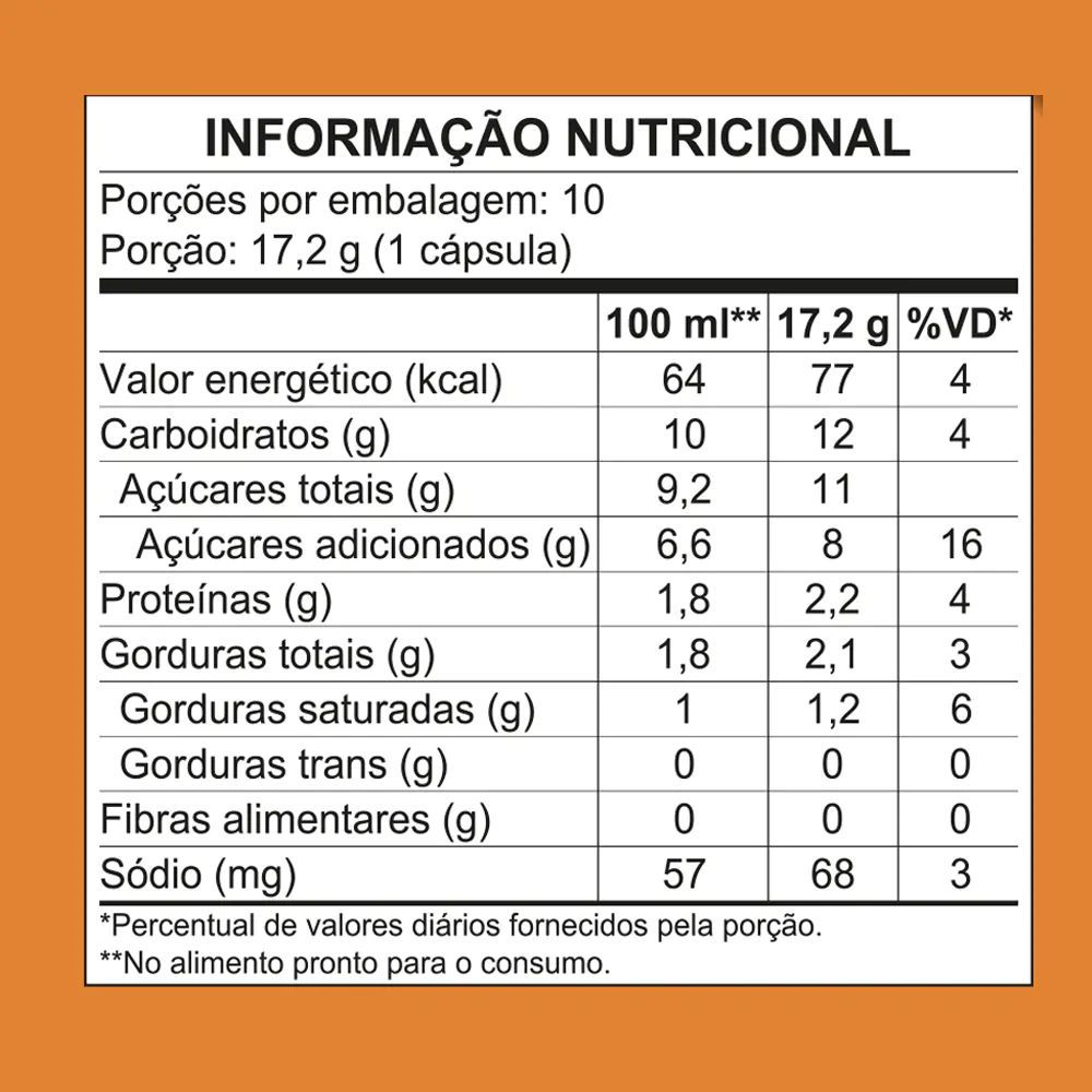 O toque da canela nunca foi tão importante na mistura com o café, o leite e o chocolate. A verdadeira mistura que deu certo Mistura para preparo de bebida à base de leite com café, cacau e canela. Ingredientes: Leite em pó integral, açúcar, café solúvel, cacau, sal, canela (0,2%), emulsificante lecitina de soja e aromatizante. ALÉRGICOS: CONTÉM DERIVADOS DE LEITE E SOJA. PODE CONTER TRIGO, CEVADA E AVEIA. CONTÉM LACTOSE. CONTÉM GLÚTEN.