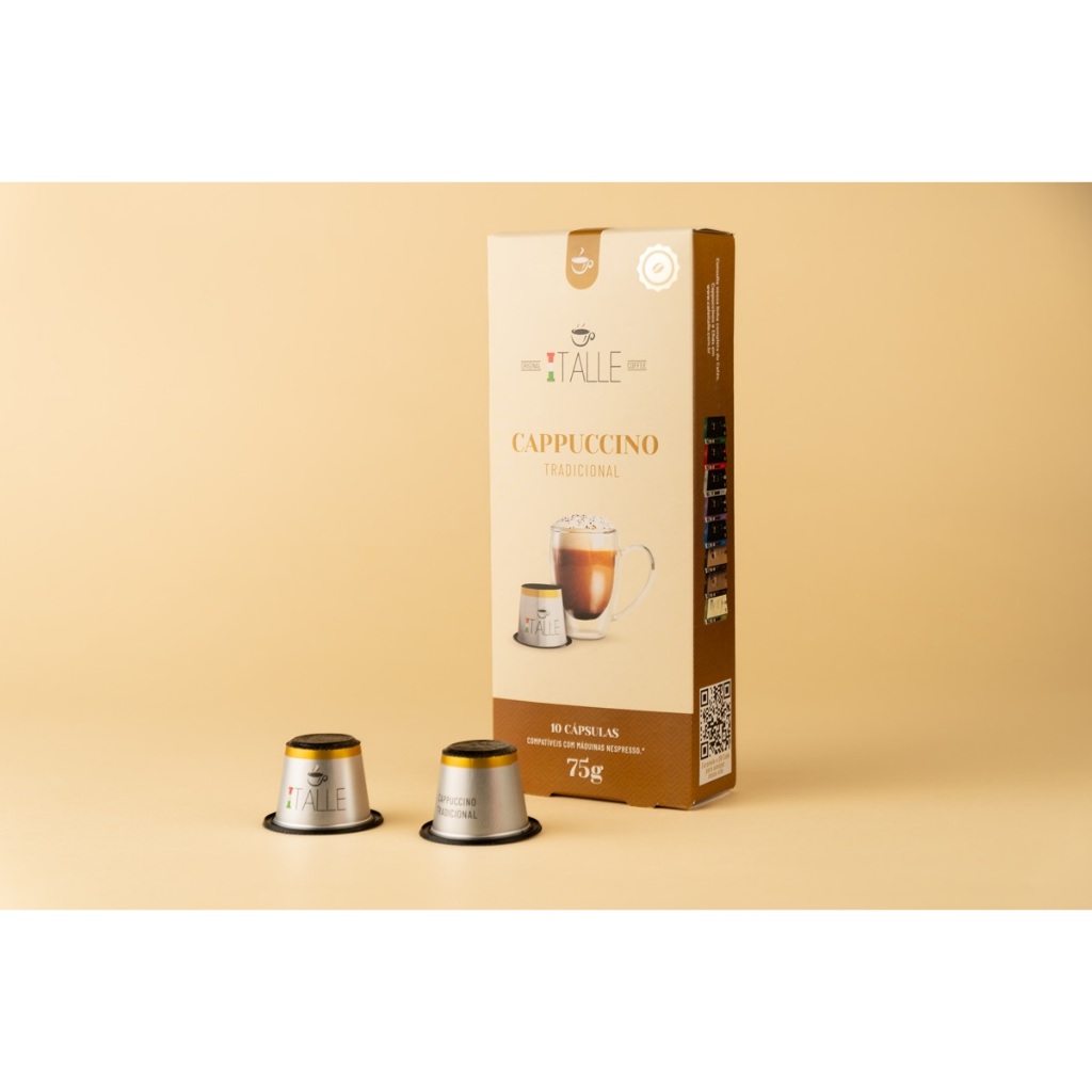 KIT 20 CÁPSULAS COMPATÍVEL COM NESPRESSO - 10 capsulas Cappuccino - 10 capsulas Creme Brulee CAPPUCCINO TRADICIONAL ITALLE: O cappuccino Italle é ideal para os fãs dessa bebida que conquistou o mundo. Nossas cápsulas combinam com café, chocolate e leite da mais alta qualidade, com o toque certo de canela, proporcionando a cremosidade perfeita para qualquer momento do dia. Deixe sua bebida ainda mais gostosa adicionando chantily e um toque de achocolatado em pó. Café Italle Sabor Crème Brûlèe Um das receitas mais clássicas da França direto para o seu paladar. Nosso Crème Brûlée traz a máxima cremosidade com o toque delicioso da baunilha para te surpreender. Prove também com um toque de canela em pó, para um sabor ainda mais elaborado. Experimente seu momento Italle! ALÉRGICOS: CONTÉM LEITE E DERIVADOS, E DERIVADOS DE SOJA.