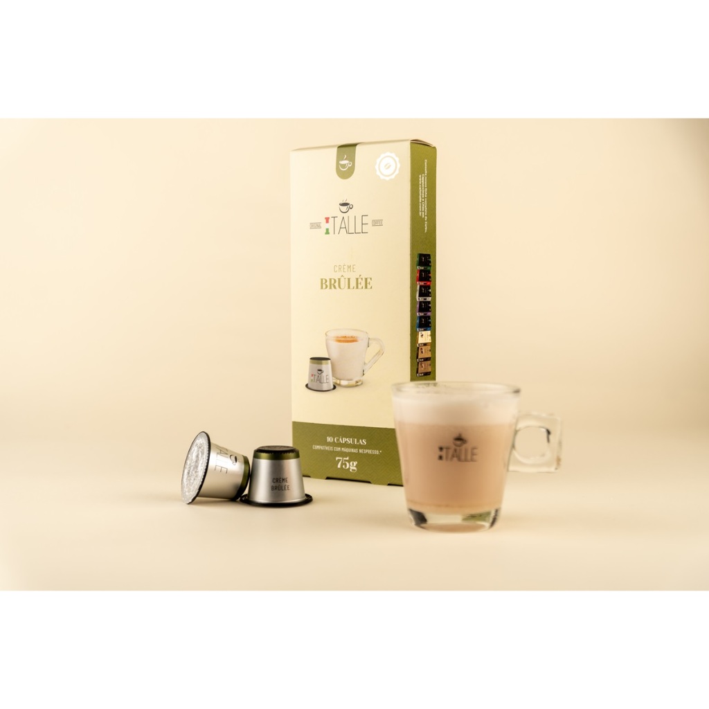 KIT 10 CÁPSULAS COMPATÍVEL COM NESPRESSO - 10 cápsulas Creme Brulee CREME BRULEE CAFE ITALLE Café Italle Sabor Crème Brûlèe Um das receitas mais clássicas da França direto para o seu paladar. Nosso Crème Brûlée traz a máxima cremosidade com o toque delicioso da baunilha para te surpreender. Prove também com um toque de canela em pó, para um sabor ainda mais elaborado. Experimente seu momento Italle! ALÉRGICOS: CONTÉM LEITE E DERIVADOS, E DERIVADOS DE SOJA.