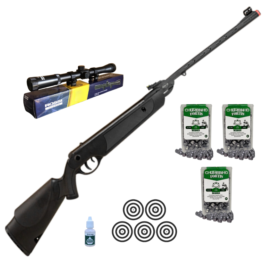 LOJA CORDILHEIRA SPORT! CARABINA DE PRESSÃO ROSSI DIONE SPORT GÁSRAM 55KG 5,5MM + ESCOLHA SEU KIT Descrição: A Carabina de Pressão Rossi Dione Sport 5,5mm Gás Ram combina potência, precisão e conforto para oferecer uma experiência de tiro excepcional. Com sua mola pneumática GásRam, entrega 13,3 Joules de energia e uma velocidade de até 183 m/s (600fps), garantindo disparos consistentes e eficazes. Seu cano de 432mm e a mira com fibra óptica proporcionam alto nível de precisão, ideal para alvos a médias distâncias. Construída com materiais resistentes, possui coronha ambidestra Montecarlo e acabamento recartilhado para melhor empunhadura. A trava de segurança manual garante um uso mais confiável. Equilíbrio perfeito entre potência e controle, essa carabina é a escolha certa para quem busca desempenho superior no tiro esportivo. Garanta já a sua e leve sua performance a outro nível! Características: Marca: Rossi Modelo: Dione Sport 5,5mm Ação: Gás Ram 55kg Calibre: 5,5mm Modo de Disparo: Monotiro Engatilhamento: Quebra cano Sistema antidisparo - NÃO POSSUI Regulagem de gatilho - POSSUI Munição utilizada - CHUMBINHO Velocidade máxima- 183 M/S// 600FPS Peso munição referência velocidade (g) - 0,80 G Energia (joule) - 13,3 JOULE Peso do produto - 2440 G Comprimento do produto - 1070 MM Material do produto - METAL/POLÍMERO Cano (comprimento) - 432 MM Cano (acabamento) - POLÍMERO Capacidade de munição - MONOTIRO Trava de segurança - MANUAL Alça de mira - REGULAVEL Fibra óptica - ALÇA E MASSA DE MIRA Massa de mira - FIXA COM TÚNEL Coronha (material) - POLÍMERO Coronha (acabamento) - RECARTILHADA Coronha (empunhadura) - AMBIDESTRA Coronha (encosto) - MONTECARLO FIXO Coronha (thumbhole) - NÃO POSSUI Coronha (porta chumbinho) - POSSUI Coronha (zarelho p/ bandoleira) - POSSUI Trilho (tipo) - RABO DE ANDORINHA Trilho (tamanho) - 11 MM Carga da mola pneumática - 55 KG ESCOLHA SEU KIT: KIT 0: Itens Inclusos: 01 Carabina de Pressão Dione Sport GásRam 55kg 5,5mm KIT 1: Itens Inclusos: 01 Carabina de Pressão Dione Sport GásRam 55kg 5,5mm 300 Chumbinhos Fortis 5,5mm 01 Luneta Rossi 4x20 (3/8) 05 Alvos de Papel 01 Óleo de Silicone KIT 2: Itens Inclusos: 01 Carabina de Pressão Dione Sport GásRam 55kg 5,5mm 300 Chumbinhos Fortis 5,5mm 01 Capa 118x18cm 05 Alvos de papel 01 Óleo de Silicone KIT 3: Itens Inclusos: 01 Carabina de Pressão Dione Sport GásRam 55kg 5,5mm 300 Chumbinhos Fortis 5,5mm 01 Luneta 4x20 Rossi (3/8) 01 Capa 118x18cm 01 Bandoleira 05 Alvos de papel Garantia: 12 Meses pelo Fabricante. NÃO NECESSITA CR PARA COMPRA! ATENÇÃO!!! O USO DO PRODUTO EXIGE TREINAMENTO E EQUILÍBRIO EMOCIONAL. DEVERÁ SER GUARDADO EM LUGAR SEGURO E FORA DO ALCANCE DE TERCEIROS. Importante: Estes produtos não necessitam de guia de tráfego para transporte e deslocamento. O Transporte do equipamento deve ser feito dentro da caixa /maleta/ Case, deve estar desmuniciado e com a nota fiscal. Produto destinado para maiores de 18 anos Todos os produtos anunciados estão em estoque a pronta entrega. Só comercializamos produtos NOVOS e com NOTA FISCAL em nome do comprador e com garantia. Prezamos muito o nosso comprometimento com o cliente, todas as perguntas são respondidas o mais rápido possível. COMPRANDO MAIS ITENS DA LOJA VOCÊ TEM DESCONTO NO FRETE!!! VER TODOS OS PRODUTOS DA LOJA EM: “VER MAIS ANÚNCIOS DO VENDEDOR” OU “PERFIL DA LOJA”