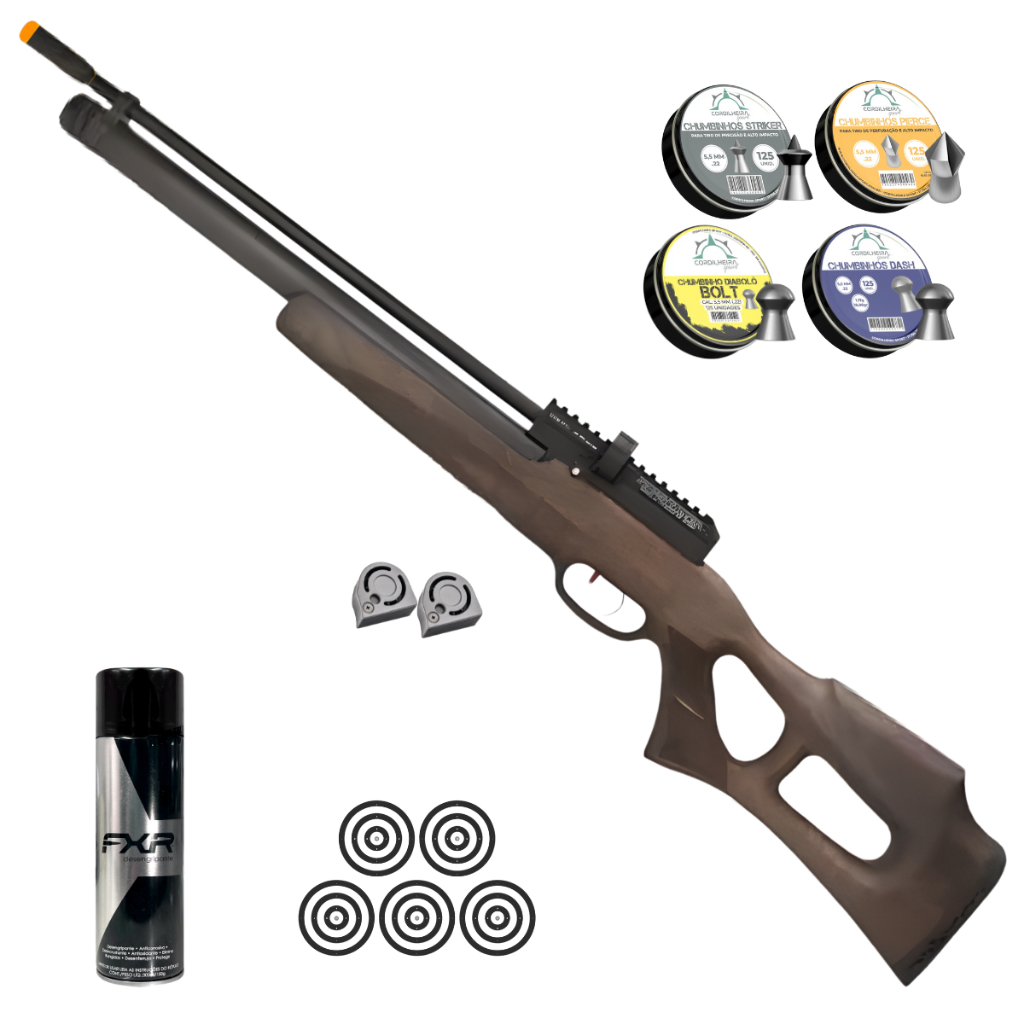 LOJA CORDILHEIRA SPORT! CARABINA DE PRESSÃO FXR PCP PUNCHER NISH W MADEIRA 5,5MM + ESCOLHA SEU KIT Descrição: A Kral Arms Puncher Nish W é uma carabina de pressão do tipo PCP (Pré-Carregada Pneumática), com calibre 5.5mm, ideal para atiradores exigentes e uso mais avançado. Possui velocidade de 900 pés/seg (aprox. 274 m/s) e conta com magazine rotativo de 12 tiros, oferecendo praticidade em tiros sequenciais. Seu design robusto inclui coronha em madeira, gatilho em metal com trava manual, e trilho duplo 11/22mm para instalação de miras ópticas. A carabina não possui alça nem massa de mira, sendo ideal para uso com lunetas. Com peso de 3,65 kg e comprimento total de 100 cm, oferece boa estabilidade e controle. Características: Marca: Kral Arms Modelo: Puncher Nish W Calibre: 5.5mm Velocidade aproximada: 900 pés/seg (274 m/s) Peso: 3.65kg Ação: PCP Comprimento total: 100cm Comprimento do cano: 20.9” / 53 cm Capacidade munição: Magazine 12 Tiros Capacidade cilindro: 280cc Autonomia: aprox. 96 Trava de gatilho: Manual Coronha: Madeira Trilho: 11/22mm Gatilho: Em Metal Alça de mira: Não Possui Massa de mira: Não Possui Acompanha: 2 magazines ITENS INCLUSOS: 01 Carabina de Pressão FXR Puncher Nish W Madeira 5,5mm 01 Manual de Instruções 02 Magazines KIT-0: 01 Carabina de Pressão FXR Puncher Nish W Madeira 5,5mm 01 Manual de Instruções 02 Magazines 500 Chumbinhos Cordilheira 5,5mm KIT-1: 01 Carabina de Pressão FXR Puncher Nish W Madeira 5,5mm 01 Manual de Instruções 02 Magazines 500 Chumbinhos Cordilheira 5,5mm 05 Alvos 01 Desengripante FXR KIT-2: 01 Carabina de Pressão FXR Puncher Nish W Madeira 5,5mm 01 Manual de Instruções 02 Magazines 500 Chumbinhos Cordilheira 5,5mm 01 Bomba 3 Estágios 05 Alvos 01 Desengripante FXR 01 Kit de limpeza FXR com 10 peças KIT-3: 01 Carabina de Pressão FXR Puncher Nish W Madeira 5,5mm 01 Manual de Instruções 02 Magazines 500 Chumbinhos Cordilheira 5,5mm 01 Bomba 3 Estágios 01 Luneta FXR 4x32e ( 7/8) 01 Capa para Carabina FXR 01 Bandoleira Universal 05 Alvos 01 Desengripante FXR 01 Kit de limpeza FXR com 10 peças Garantia: 3 Meses pelo Fabricante. NÃO NECESSITA CR PARA COMPRA! ATENÇÃO!!! O USO DO PRODUTO EXIGE TREINAMENTO E EQUILÍBRIO EMOCIONAL. DEVERÁ SER GUARDADO EM LUGAR SEGURO E FORA DO ALCANCE DE TERCEIROS. Importante: Estes produtos não necessitam de guia de tráfego para transporte e deslocamento. O Transporte do equipamento deve ser feito dentro da caixa /maleta/ Case, deve estar desmuniciado e com a nota fiscal. Produto destinado para maiores de 18 anos Todos os produtos anunciados estão em estoque a pronta entrega. Só comercializamos produtos NOVOS e com NOTA FISCAL em nome do comprador e com garantia. Prezamos muito o nosso comprometimento com o cliente, todas as perguntas são respondidas o mais rápido possível. COMPRANDO MAIS ITENS DA LOJA VOCÊ TEM DESCONTO NO FRETE!!! VER TODOS OS PRODUTOS DA LOJA EM: “VER MAIS ANÚNCIOS DO VENDEDOR” OU “PERFIL DA LOJA”