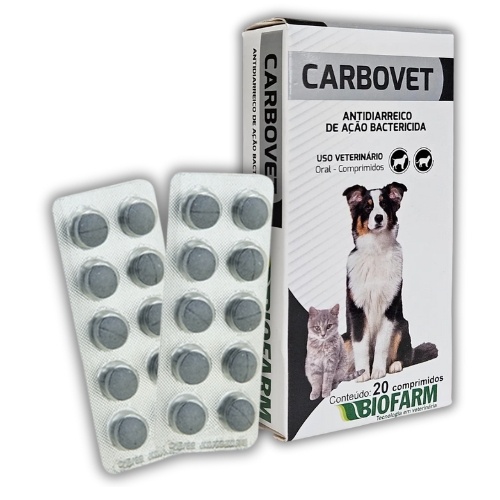 Carbovet Antidiarreico 20 Comprimidos Para Cães e Gatos Ação Bactericida Eficaz - Biofarm