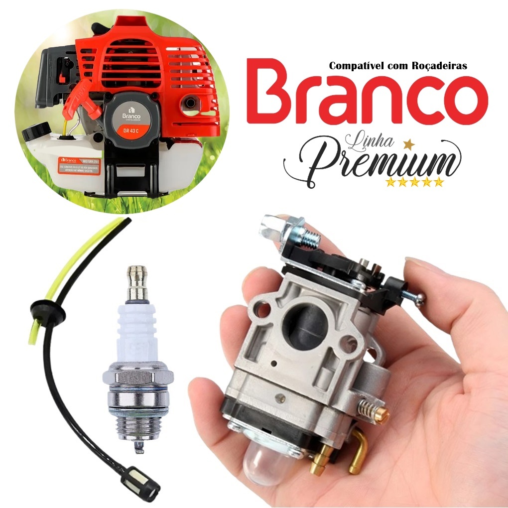 Carburador + Vela De Ignição + Kit Mangueira Com Filtro P/ Roçadeira Branco Br43g / Br52g