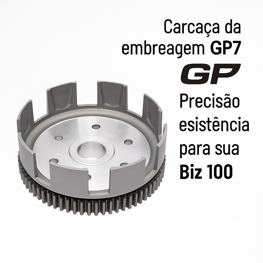 CARCAÇA EXTERNA DA EMBREAGEM GP7 – BIZ 100 1998 A 2005 Mantenha a embreagem da sua Honda Biz 100 com desempenho original! A carcaça externa da embreagem GP7 é desenvolvida com materiais de alta resistência, oferecendo encaixe perfeito e longa durabilidade para o uso urbano diário. Compatibilidade Compatível com: Honda Biz 100 – anos 1998 a 2005 Especificações Técnicas Marca: GP7 Código: 22100-KFM-900 Tipo: Carcaça Externa da Embreagem Material: Liga metálica de alta resistência Resistente a altas temperaturas e desgaste Encaixe sob medida para o sistema original Honda Produto balanceado, pronto para instalação Benefícios de comprar na Kizz Moto Peças Produto novo com qualidade garantida Envio rápido para todo o Brasil Suporte especializado via WhatsApp Loja com reputação excelente nos marketplaces Confiança, procedência e pronta entrega! Qualidade que acompanha você todos os dias! Compre na Kizz Moto Peças e mantenha sua moto sempre pronta. Imagens meramente ilustrativas