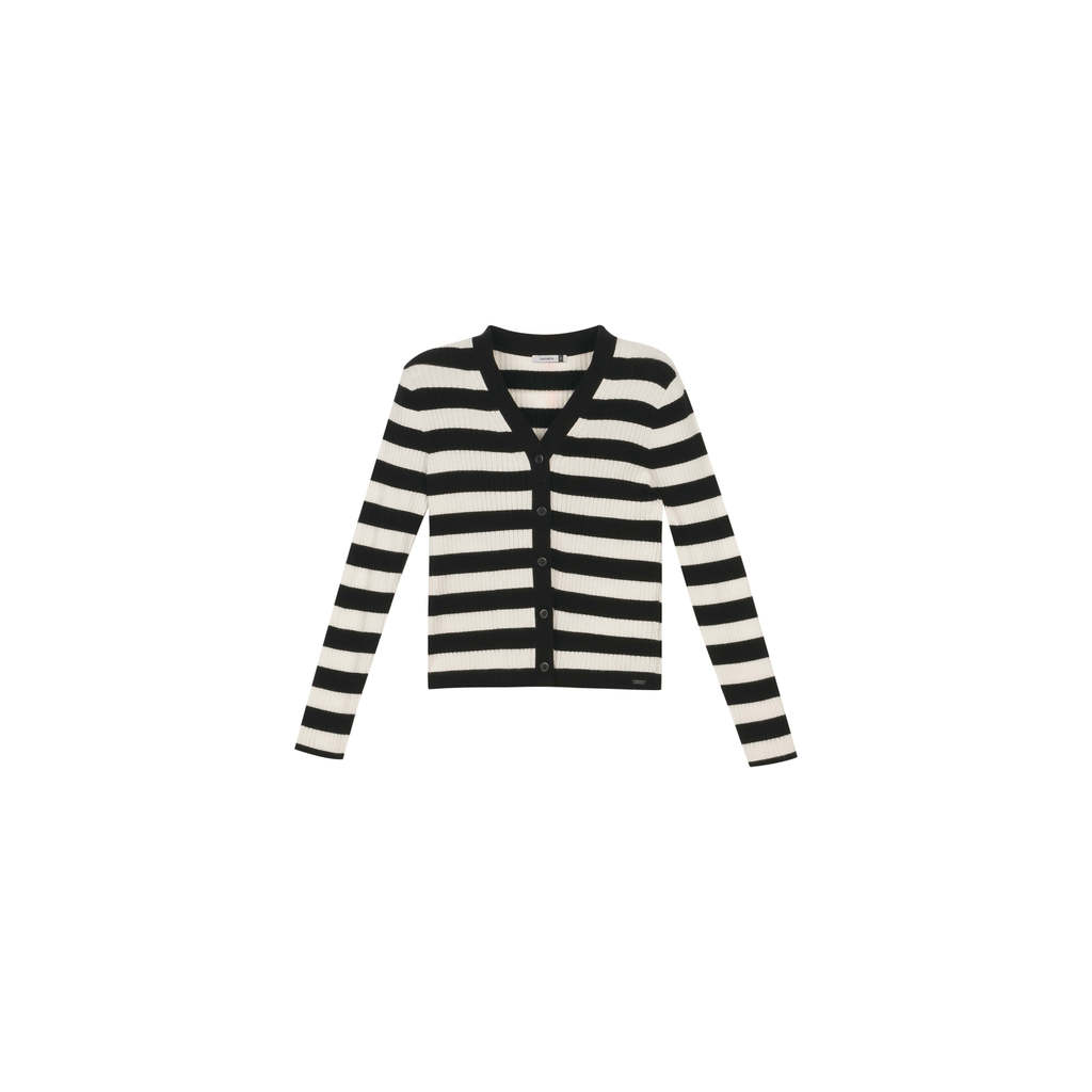 Cardigan Feminino Listrado Tricot Marialícia Preto
