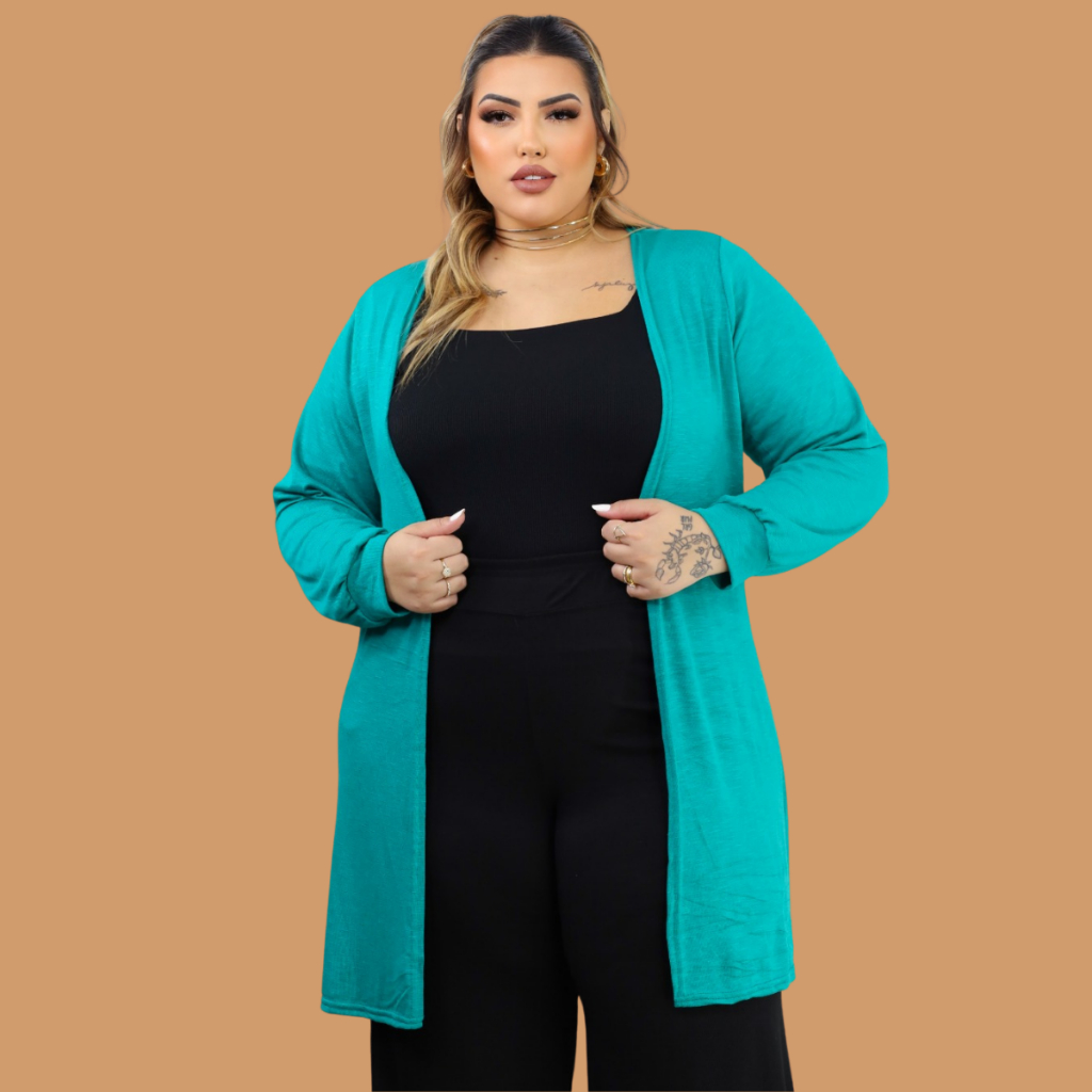 Cardigan Feminino Plus Size Alongado Casual Inverno