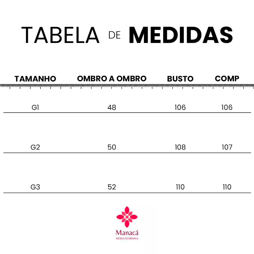 🚚 ENVIO IMEDIATO EM ATÉ 12H ÚTEIS Cardigan Longo Feminino Plus Size Viscolycra Premium Cardigan feminino longo plus size elegante e versátil, perfeito para compor looks modernos e confortáveis em diversas ocasiões. Possui bolsos e fendas laterais que trazem ainda mais estilo e praticidade para o dia a dia. Peça atemporal que combina facilmente com vestidos saias shorts ou calças, ideal para trabalho passeios ou momentos casuais. Destaques do Produto • Cardigan longo feminino plus size • Bolsos práticos e fendas laterais • Modelagem confortável • Peça versátil para diversas ocasiões • Look elegante e moderno Tecido Viscolycra Premium 94% Viscose 6% Elastano • Tecido leve macio e confortável • Excelente elasticidade • Caimento fluido e elegante • Modela o corpo com suavidade Tamanhos Disponíveis GG veste 44 ao 46 G1 veste 46 ao 48 G2 veste 48 ao 50 G3 veste 50 ao 52 Medidas Aproximadas G1 veste 46 ao 48 Ombro a ombro 48 cm Ombro 16 cm Busto 106 cm Comprimento 106 cm Manga 58 cm G2 veste 48 ao 50 Ombro a ombro 50 cm Ombro 17 cm Busto 108 cm Comprimento 107 cm Manga 107 cm G3 veste 50 ao 52 Ombro a ombro 52 cm Ombro 18 cm Busto 110 cm Comprimento 108 cm 💬 Qualquer dúvida, é só chamar no chat! 🛍️ Boas compras!