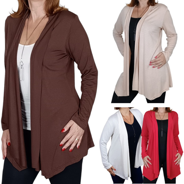 | Cardigan Kimono Feminino Manga Longa em Malha Viscolycra Meia Estação este produto | R$ 45,41 | 9% | 4.9/5 | 21 |