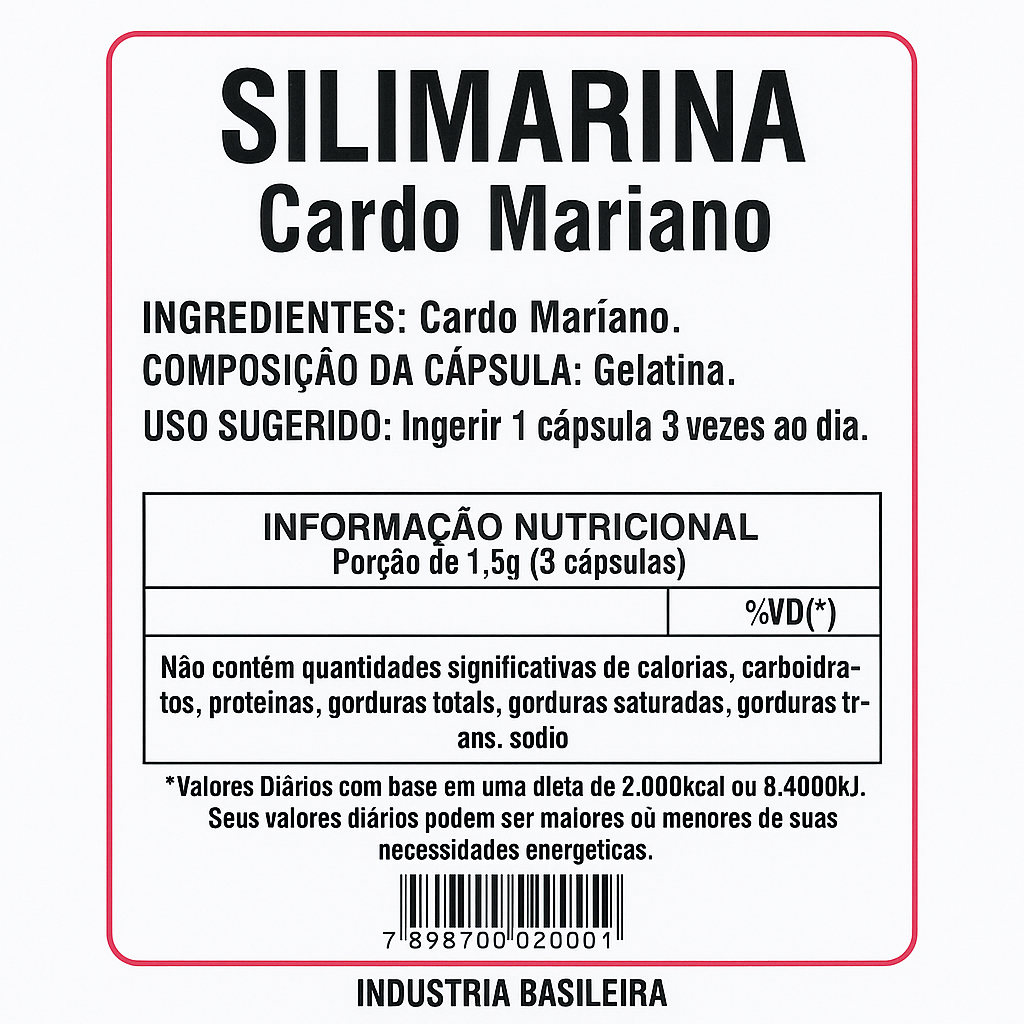 Cardo Mariano da - Cuidado Completo para o Seu Fígado! Você valoriza sua saúde e bem-estar? Apresentamos o Cardo Mariano da Ervas Brasil, um suplemento premium formulado com o poderoso extrato de silimarina, extraído das sementes da planta Silybum marianum. Cuide do seu fígado de uma maneira natural e eficaz com nosso produto excepcional.Por que escolher o Cardo Mariano? Hepatoproteção Avançada: A silimarina, ingrediente chave do Cardo Mariano, é reconhecida por suas propriedades hepatoprotetoras, auxiliando na proteção do fígado contra toxinas e substâncias prejudiciais. Antioxidante Natural: Combata os radicais livres e promova a saúde celular com o poder antioxidante do Cardo Mariano. Proteja suas células dos danos causados pelo estresse oxidativo diário. Apoio à Saúde Digestiva: Além de beneficiar o fígado, nosso suplemento contribui para a saúde digestiva, promovendo uma função hepática equilibrada e melhorando a digestão. Qualidade Ervas Brasil: Confie em uma marca comprometida com a excelência. O Cardo Mariano da Ervas Brasil é produzido sob rigorosos padrões de qualidade, garantindo um produto seguro e eficaz. Fácil de Incorporar na Rotina: Com cápsulas fáceis de ingerir, o Cardo Mariano se encaixa perfeitamente em sua rotina diária, proporcionando benefícios essenciais sem complicações. Invista na Sua Saúde Agora!Não deixe que a vida agitada comprometa a saúde do seu fígado. Escolha o Cardo Mariano da e fortaleça a base do seu bem-estar. Compre agora e dê ao seu corpo o suporte que ele merece para enfrentar os desafios diários. Sua saúde agradece!