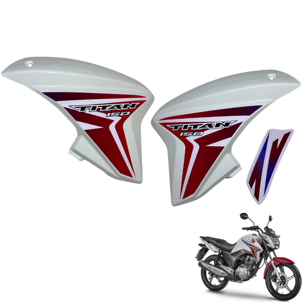 PRODUTO NÃO É ORIGINAL DA MARCA HONDA FABRICANTE: PARAMOTOS / SPORTIVE Contém no pedido: PAR DE ABA DO TANQUE TITAN 150 modelo 2014 / 2015 ****** ATENÇÃO ****** NÃO ACOMPANHA O PAR DE COMPLEMENTOS INTERNOS Aplicação: Cg Titan 150 2014 / 2015 TABELA DE CORES: VERMELHO PIMENTA - Titan 150 2014 VERMELHO MACEIO - Titan 150 2015 AZUL TWISTER - Titan 150 2014 PRETO BRILHO - Titan 150 2014 2015 BRANCO ROSS - Titan 150 2014 2015 AMARELA - Titan 2014 Especificações: Encaixe Perfeito; Peças Pintadas com alta qualidade; Cores Iguais o modelo Original; Peças de alto padrão, aprovadas pelo INMETRO; Fabricação nacional. Instalação: - A instalação deve ser feita por um profissional especializado. A nossa loja não se responsabiliza por instalação mal realizada. Garantia; Garantia de 30 dias contra DEFEITOS de fabricação. Sobre a Gomes Moto Peças, Estamos no mercado de varejo para motocicletas a 6 anos, somos referência em qualidade e confiança, enviamos para todo território nacional. Sobre Envio: Envio imediato do seu produto comprado até as 12 horas: Finais de Semanas e Feriados o envio é no próximo dia útil. IMPORTANTE: Enviamos nota fiscal em todos nossos produtos. GOMES MOTO PEÇAS SUA SATISFAÇÃO É NOSSA META!