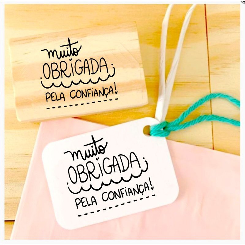 Carimbo decorativo MUITO OBRIGADA PELA CONFIANÇA aqui dentro tem muito amor para produto artesanal