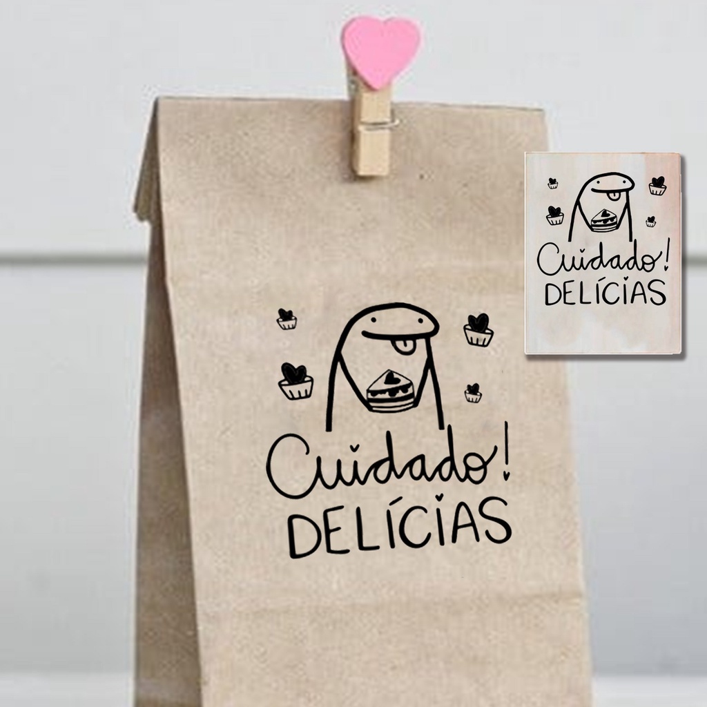 Carimbo Flork Cuidado Delícias Para Sacolas Sacos Kraft Tags