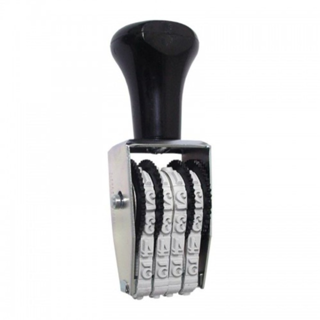 O carimbo é um numerador manual rotativo, ideal para uso em documentos ou produtos que necessitem a marcação por números, como páginas, códigos, protocolos, sequências numéricas, lotes, contas e etc. Fabricado com materiais de excelente qualidade e durabilidade, seu cabo é feito em plástico ABS e cavalete em aço carbono banhado a Zinco, que confere ao modelo excelente ergonomia e facilidade de uso no dia a dia. O carimbo necessita de uma almofada de tinta para carimbo e pode ser usado em papel sulfite, papelão, papel pardo, ou em materiais e superfícies que tenham capacidade de absorção de tinta. Para uso do carimbo em superfícies lisas e possuem algum beneficiamento ou verniz, como: folhetos, catálogos, embalagens e sacos plásticos, sacaria, entre outros, recomenda-se o uso de tintas de secagem rápida e almofada sem tinta. Utilizar tinta de secagem rápida requer limpeza periódica e há diminuição da vida útil do produto.