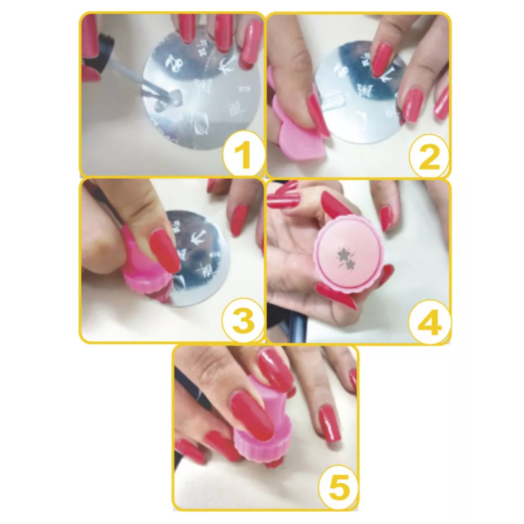 Carimbo para Unhas - Kit Conjunto De Placas e Carimbo de Unha