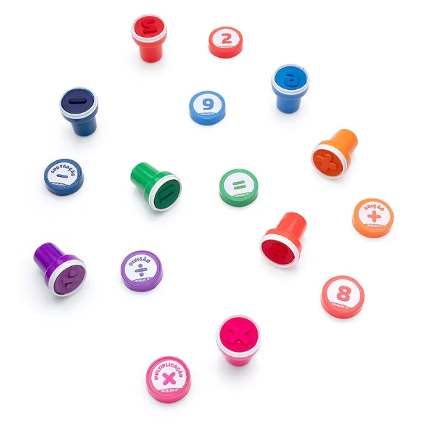 Olha só quem chegou para ajudar as crianças a aprenderem matemática: Carimbo Pedagógico Autotintado Números - Blister c/ 15 Unidades Leo&Leo. Ele é ideal para uso escolar, incentivando alunos e professores a ficarem mais estimulados, pois torna as aulas de matemática mais dinâmicas, bem como na realização de lições e tarefas, o que deixa tudo mais divertido! São 15 carimbos com números e operações matemáticas. Os números vão do 0 ao 9, com diferenciação de cor por números pares e ímpares. E 4 operações matemáticas, adição, subtração, multiplicação e divisão, cada uma com uma dor diferente. O legal é que os carimbos autotintados já são prontos para uso imediato, e seu design é compacto e fácil de manusear. Recomendado para crianças a partir de 3 anos, o Carimbo Pedagógico Autotintado Números Leo&Leo é atóxico e possui encaixe para lápis, sendo um diferencial bem interessante e prático. Não recomendável para crianças menores de 3 (três) anos por conter parte(s) pequena(s) que pode(m) ser engolida(s) ou aspirada(s). FICHA TÉCNICA: Contém 15 carimbos autotintados Possui encaixe para lápis Atóxico Composição do Corpo: Resina termoplástica; Composição da Tinta: Ácido linoleico, glicerol, pigmento, água deionizada. Possui Certificado INMETRO