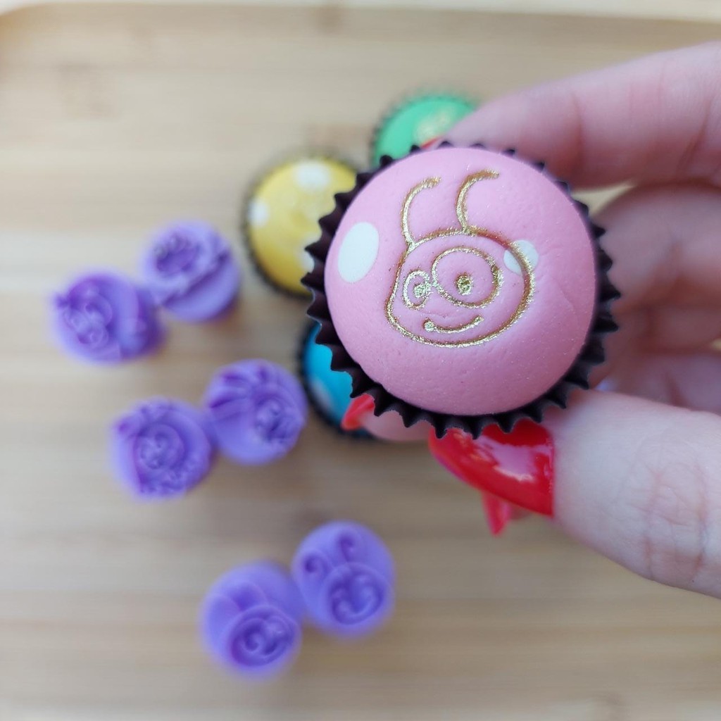 Contém: 6 modelos de carimbo. Tamanho aproximado do desenho: 1,5 cm a 1,8cm Tamanho das bases: 3,5cm x 2,00cm Profundidade do desenho: 0,6cm Indicado para docinhos de 14 a 20 gramas. 𝗜𝗱𝗲𝗮𝗶𝘀 𝗽𝗮𝗿𝗮 𝗯𝗿𝗶𝗴𝗮𝗱𝗲𝗶𝗿𝗼𝘀, 𝗼𝘀 𝗰𝗮𝗿𝗶𝗺𝗯𝗼𝘀 𝘁𝗮𝗺𝗯𝗲́𝗺 𝗽𝗼𝗱𝗲𝗺 𝘀𝗲𝗿 𝘂𝘁𝗶𝗹𝗶𝘇𝗮𝗱𝗼𝘀 𝗲𝗺 𝗽𝗮𝘀𝘁𝗮 𝗮𝗺𝗲𝗿𝗶𝗰𝗮𝗻𝗮, 𝗽𝗮𝘀𝘁𝗮 𝗱𝗲 𝗹𝗲𝗶𝘁𝗲 𝗲𝗺 𝗽𝗼́, 𝗯𝗶𝘀𝗰𝘂𝗶𝘁 𝗲 𝗼𝘂𝘁𝗿𝗮𝘀 𝗺𝗮𝘀𝘀𝗮𝘀 𝘀𝗶𝗺𝗶𝗹𝗮𝗿𝗲𝘀. Instruções de uso: Os carimbos não deverão ser expostos a temperatura superior a 40°. Para limpar utilizar água corrente e detergente neutro. Cor: Não possui uma cor específica, será enviado a que estiver disponível no estoque. Material: Plástico ( PLA, material biodegradável fabricado a partir do processamento de milho ou cana de açúcar). Fabricação: Impressão 3D