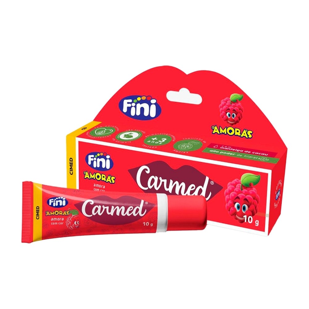 Carmed Fini Amora Claro 10gr Principais Características:- Cheirinho Fini Amoras- Com manteiga de cacau: Alto poder de hidratação- Com cor: Amora- Sem parabenos- Sem conservantes- Não testado em animais
