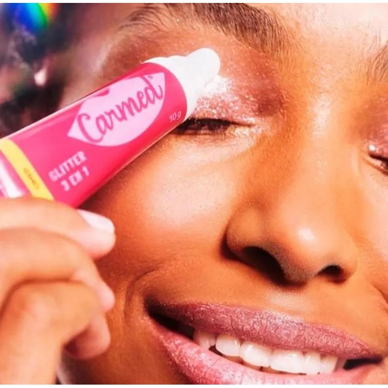 Carmed hidratante Labial Glitter 3 Em 1 10g O Produto Perfeito Para Seu Brilho Diário! O Hidratante Labial Carmed Glitter 3 em 1 Tutti-Frutti é a revolução na sua rotina de beleza! Um único produto que hidrata, ilumina e encanta, proporcionando lábios macios, um brilho cintilante e um glow irresistível no rosto e olhos.