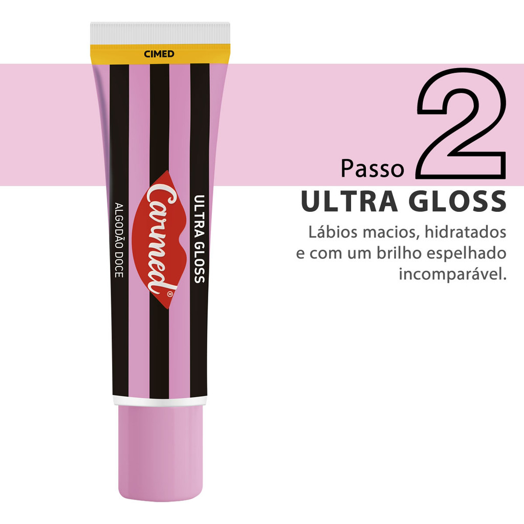 Carmed SOS Lábios Algodão Doce Esfoliante 10g + Ultra Gloss 10g Passo 1 - Esfoliante Remove as células mortas com suavidade, sem agredir, deixando os lábios renovados. Passo 2 - Ultra Gloss Lábios macios, hidratados e com um brilho espelhado incomparável.