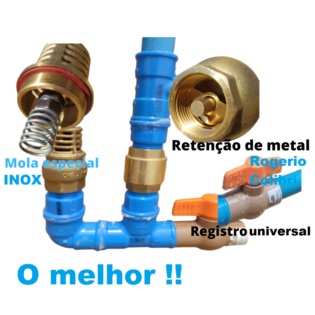 Carneiro Hidráulico Bomba D'água ecológica com entrada de 3/4" e saída de 1/2" MOLA DE AÇO INOX, fabricada exclusivamente para carneiro hidráulico. Compre com quem entende, somos fabricantes de aríete a 10 anos. focado em qualidade e aperfeiçoamento, trabalhamos com as melhores marcas do mercado. Qualidades: Conexões das melhores marcas com garantias de 10 anos. Válvulas de metal leve com garantia vitalicia. Mola de fabricação exclusiva para carneiro hidráulico. Todas conexões são coladas isso elimina o risco de vazamentos e diminui a manutenção. A mola é fabricada exclusivamente para bomba carneiro hidráulico, é um produto que você vai instalar e não vai ter dor de cabeça, fazemos rigorosos testes para manter a qualidade e desempenho ao máximo. Trabalhos somente com material de qualidade de marcas conhecidas como: Tigre, Amanco e Viqua. As válvulas são de metal, as duas e a mola é de aço inox. As válvulas são de marcas nacionais renomadas com garantia do fabricante superior a 10 anos, não utilizamos marcas chinesas desconhecidas como muitos fazem, ao comprar aqui você esta comprando um produto de qualidade produzido por profissionais experientes que ja trabalham com este produto a 10 anos. Configuração: Entrada de 25mm-3/4" e saída para mangueira 1/2". Mais informações sobre: Carneiro Hidráulico utiliza o "golpe de aríete" para bombear a água. O fluxo contínuo do liquido faz seu funcionamento, independente de fonte externa de energia, havendo água corrente pode operar por tempo indeterminado. As diferenças de pressão faz a elevação da água a uma altura superior do ponto de instalação. Sem a necessidade de combustível fóssil ou uso de eletricidade o Carneiro Hidráulico é uma alternativa sustentável, de baixo custo e que não gera impactos ambientais Simples manejo e pouca manutenção, utilizando como energia a própria água para o seu funcionamento. Proporciona melhor rentabilidade a inúmeras atividades na propriedade, racionaliza o trabalho humano Otimizando o recurso natural mais importante que é a água, ideal para as pequenas propriedades rurais. Altura minima para funcionamento: 1 metro Acrescendo a distância de instalação do Carneiro Hidráulico em referência ao ponto de captação não aumenta a quantidade de água, para aumentar a quantidade de água bombeada é necessário utilizar um diâmetro maior no Carneiro Por exemplo, ao invés de usar 1" que bombeia 10 litros por minuto, mudar para 2" que bombeia 20 litros por minuto. A bomba carneiro hidráulico utiliza golpe de aríete para bombear água de um nível mais baixo para um nível mais alto sem a necessidade de combustível fóssil ou uso de eletricidade. A construção e montagem deste caneiro hidráulico é melhor do que a do apresentado na reportagem que passou no Globo Rural Funciona a partir de 01 metro de queda, leva-se água a distancia de ate 1500 metros, seguindo uma regra básica de 10m de elevação pra cada metro de queda, ou seja com 10m de queda ira jogar 100m de altura, porem fica limitado a uma altura media de 150m e não deve ser instalado com quedas superior a 20m. Possui manual de instalação e um canal de contato disponível o tempo todo para suporte e instruções.