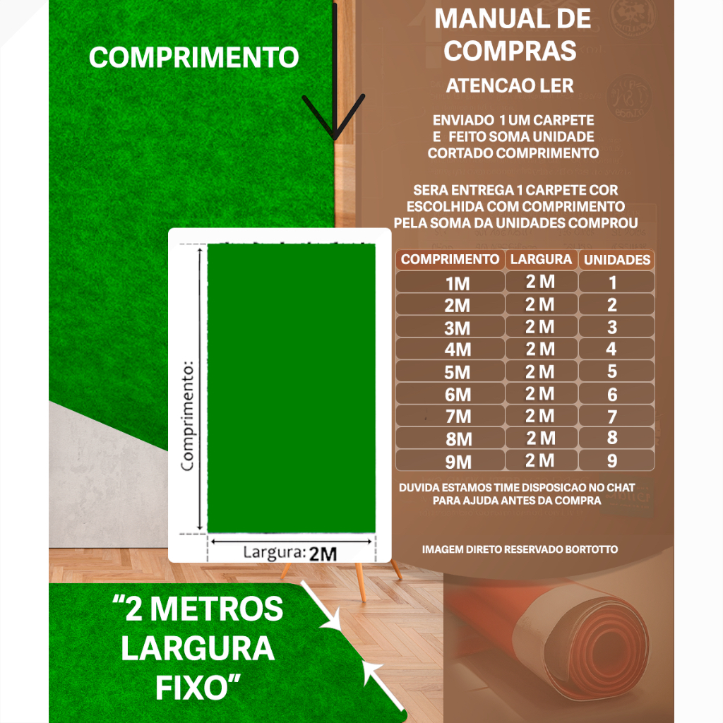 LEIA COM ATENCAO TODO ANUNCIO ANTES DE FINALIZAR A COMPRA POR FAVOR!! Carpete Varias Cores com 2 Metros de Largura para Decoração Tapete Casa Forração Residências Festas Nossos tapetes são a solução ideal para quem busca um produto resistente e econômico. Com alta durabilidade e fácil instalação, podem ser utilizados em diferentes superfícies, proporcionando praticidade e conforto em ambientes com alto tráfego de pessoas. Vantagens para uso do Carpete / Tapete Utilizado para alto tráfego de pessoas - Ótimo Preço e Custo benefício - Prático - Cor Viva para eventos e exposição DADOS TÉCNICOS: LARGURA FIXA: 2m ESPESSURA: Aproximadamente 3,5mm RESINA: Sim, nos 2 lados COMPOSIÇÃO: Fibra de pet e resina sintética FORMARTO DE VENDA : Metro quadrado (m²) 1 Unidade adicionar no carrinho 1m comprimento 2 Unidades adicionar no carrinho 2m comprimento Assim por diante (Obs: Produto Sem Emenda) Formato de Envio :Dobrado - Pelo motivo que Transportadora não aceita medida para ser enviado enrolado PERGUNTAS FREQUENTES - FAQ 1- Demora quanto tempo para enviar Resposta : Ele enviado dentro de 24h trabalhamos para envio imediato 2- Ele é enviado inteiro ou tem emendas ? Resposta : Todos Carpete enviado inteiro sem emenda somamos unidades cliente comprou de acordo com anuncio e feito corte no comprimento que deu soma . 3- Comprei 2 unidade e recebi 1 unidade ? Resposta : Ele enviado inteiro soma o comprimento pela quantidade comprou exemplo : Comprou 2 unidades 1m ( 1 + 1 = 2) vai receber 1 carpete 2 metros largura por 1 metro de comprimento Mais ele tem 2 metros largura não iria vim com 4 metros Resposta : Ele enviado inteiro largura se mantém fixa por 2 metros , caso divida o carpete no meio cliente terá 2 pedaços de carpete = 2 metros largura por 1m de comprimento 3-Tem Carpete de 3 metros de Largura Resposta Resposta : No Brazil apenas e fabricado carpete de 2 metros largura COMO INSTALAR O CARPETE EVENTOS? Recomendamos para o carpete eventos, a instalação utilizando os grampos e grampeadores, se for em ambientes como palcos e madeiras, você pode usar adesivo dupla face e velcro para locais onde não há madeira, e for piso normal, como feiras, e alguns outros tipos de eventos. Como Cortar: Tesoura - Estilete Formato de aplicação: Fita Dupla Face ,Cola de Contato ou Cola Branca