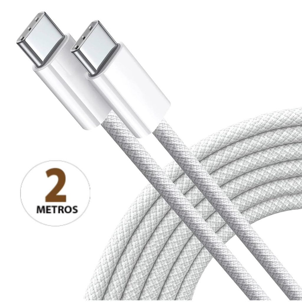 Carregador 50w Dual Cabo Tipo C 2 Metros Turbo iPhone 15, 15 Plus, 15 Pro, 15 Pro Max