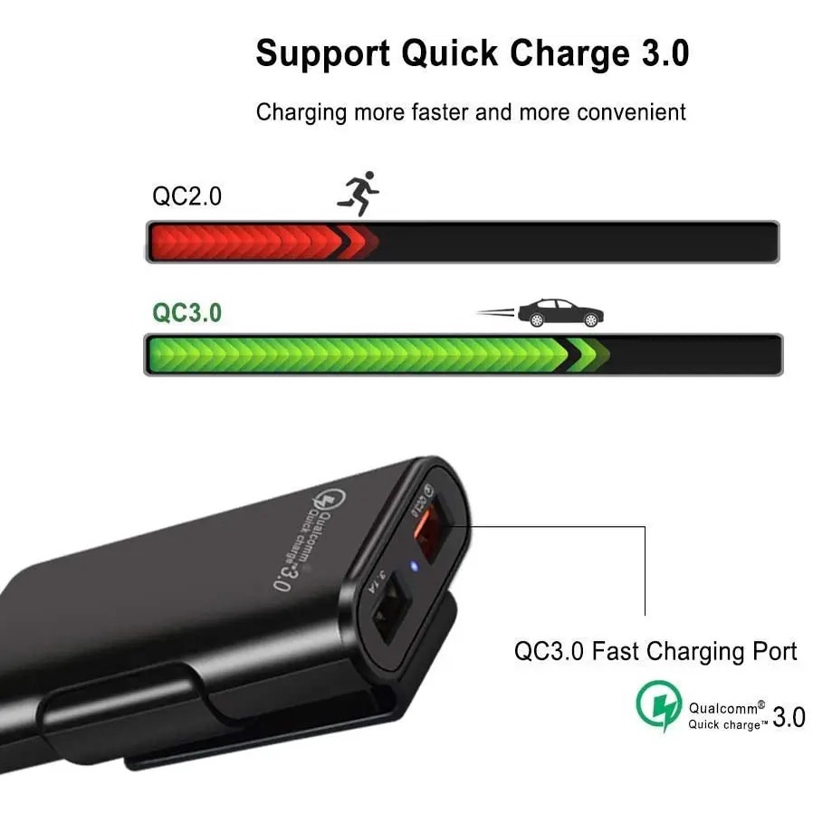 DETALHES DO PRODUTO: 4Portas USB 9.6A Entrada de 12V-24V USB alimentação de saída:5V 2.4A*3,QC3.0: 5V-3A/9V-2A/12V-1.5A Total potência de 36W Suportar corrente constante, tensão constante, sobrecorrente, temperatura excessiva proteção contra curto-circuito Chips com identificação de USB inteligencia Fusível independente Indicador de luz azul Material PC O cabo de extensão com comprimento de 160cm
