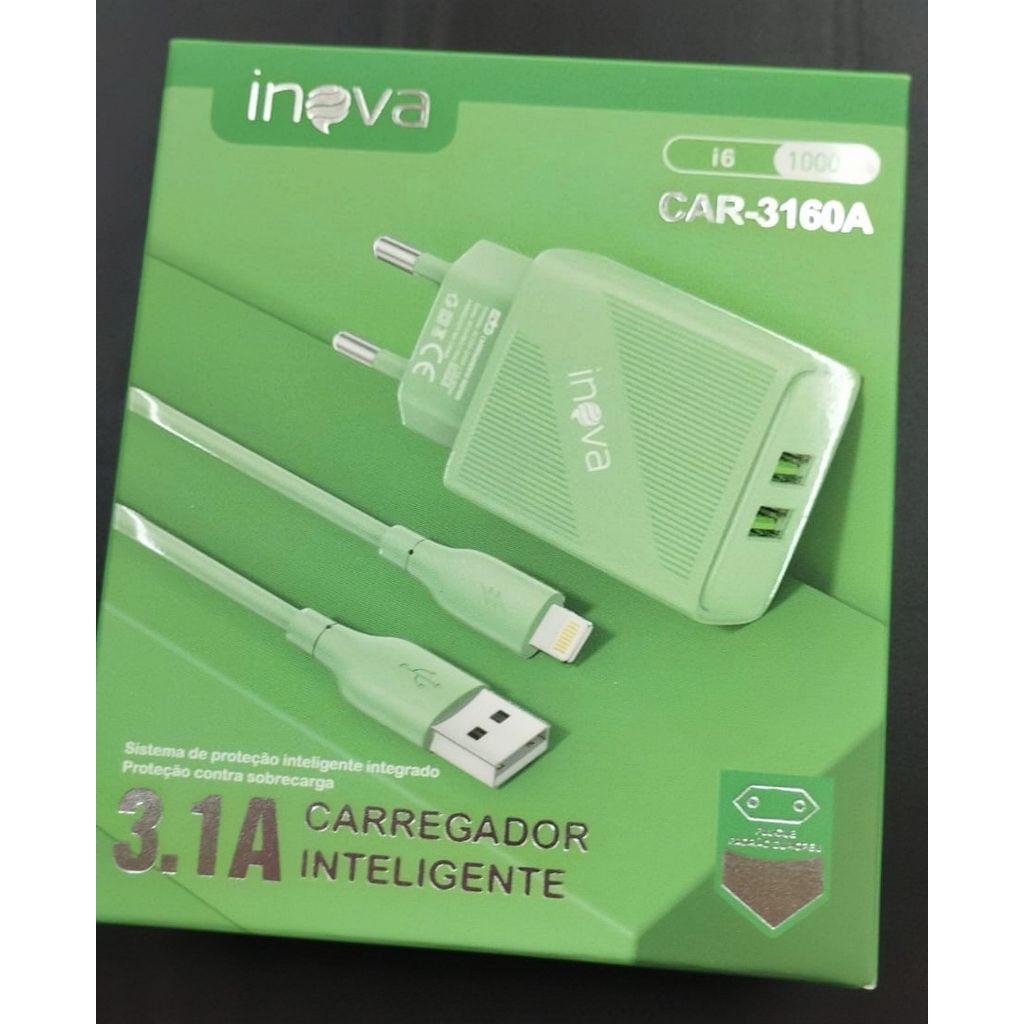 Compatível com aparelhos Android e ENTRADA IPHONE - Sam, Lenovo, Moto, Entre Outros. 2 saídas USB Carregamento Rápido Proteção de Sobrecarga ESPECIFICAÇÕES TÉCNICAS ---Modelo Car-360A--- - Saída: 2 portas USB 3.1A Carregamento Rápido - Entrada de energia: AC 100-240V (50-60Hz) - Tamanho do Cabo: 1 metro Devido à diferença de configuração de luz e tela, a cor do item pode ser ligeiramente diferente das fotos.