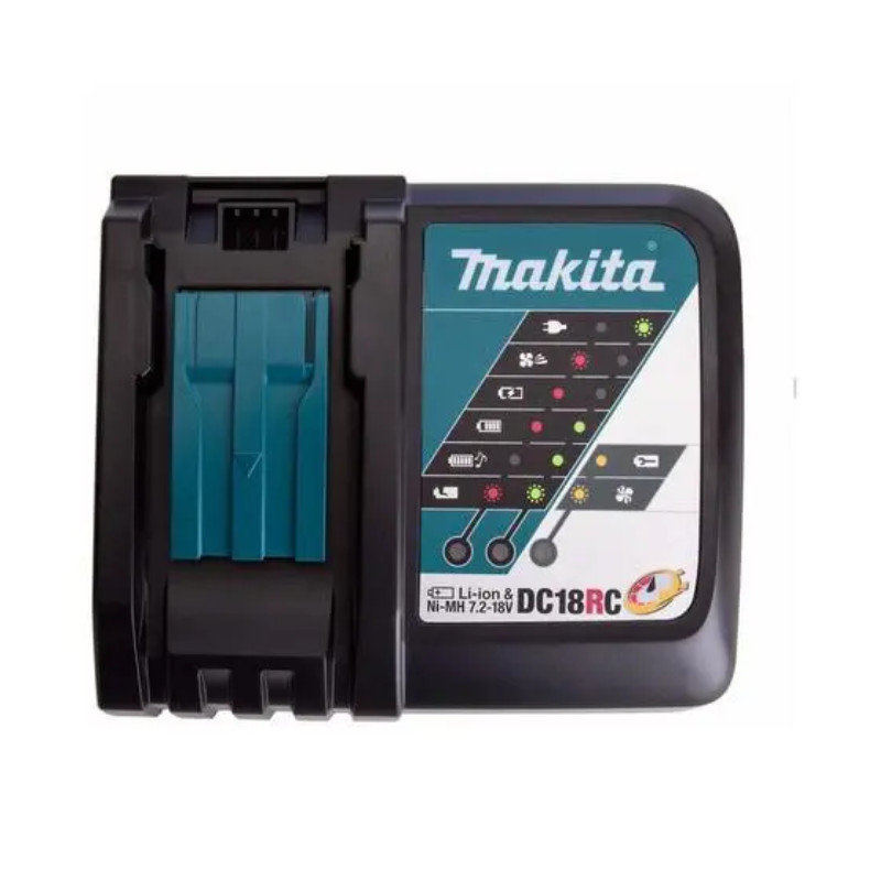 Carregador de Bateria 14.4 e 18V DC18RC Bivolt Makita Com o Carregador DC18RC, da Makita, a bateria dura mais porque pode ser carregada com o melhor método e em pouco tempo. Características Carregador bivolt. Recarga em baterias de 18V e 14.4V de íons de lítio. Não é compatível com as baterias BL1813G, BL1413G, BL1811G e BL1411G. Informações Técnicas Tempo de recarga: - Bateria 18V 6.0 Ah: 55min; - Baterias 18 e 14.4V 5.0 Ah: 45min; - Baterias 18 e 14.4V 4.0 Ah: 36min; - Baterias 18 e 14.4V 3.0 Ah: 22min; - Baterias 18 e 14.4V 2.0 Ah: 18min; - Baterias 18 e 14.4V 1.5 Ah: 15min; - Baterias 18 e 14.4V 1.3 Ah: 15min. A Makita é reconhecida em todo o mercado brasileiro e internacional. Produto com o máximo desempenho para diversos usos. Caso tenha alguma duvida solicite um atendimento ténico. Observação: - Não acompanha bateria; - Todas as informações divulgadas são de responsabilidade do Fabricante/Fornecedor; - Imagens meramente ilustrativas, consulte nosso atendimento para mais detalhes.