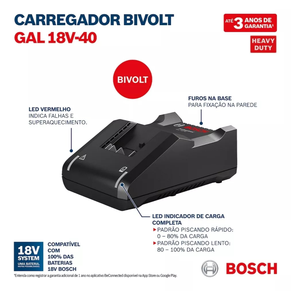 Carregador De Bateria Bosch Rápido Gal 18v-40 18v Bivolt