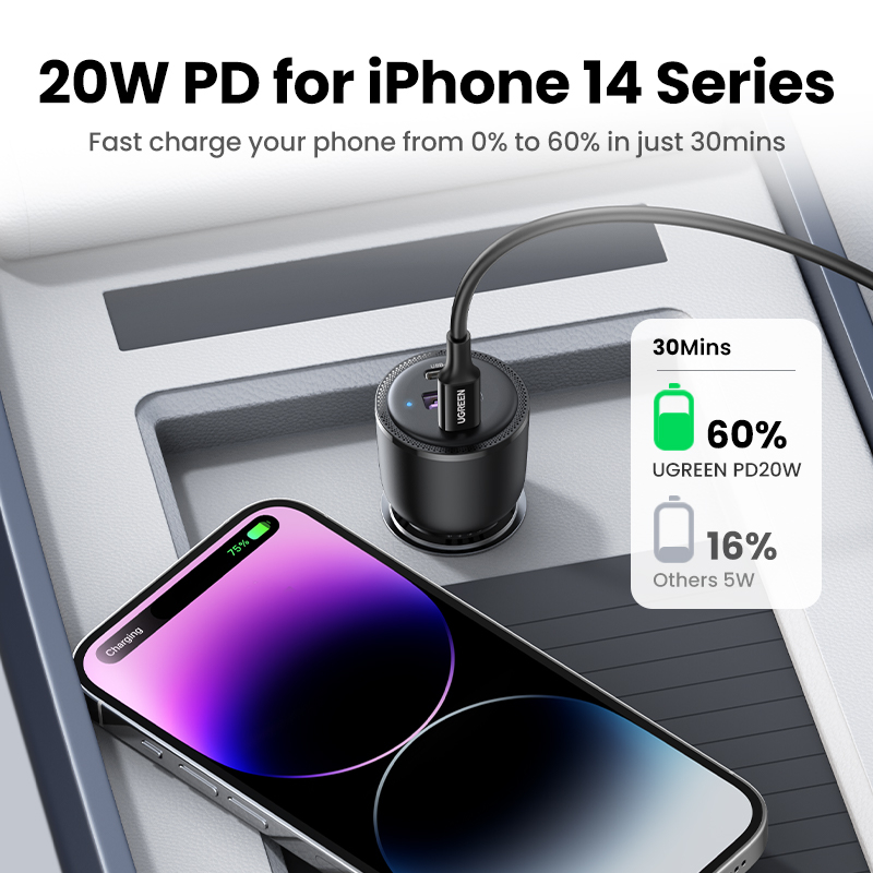 Carregador De Carro UGREEN 69W USB Tipo C Porta Dupla PD QC Carregamento Rápido Para Telefone Laptop iPhone Samsung