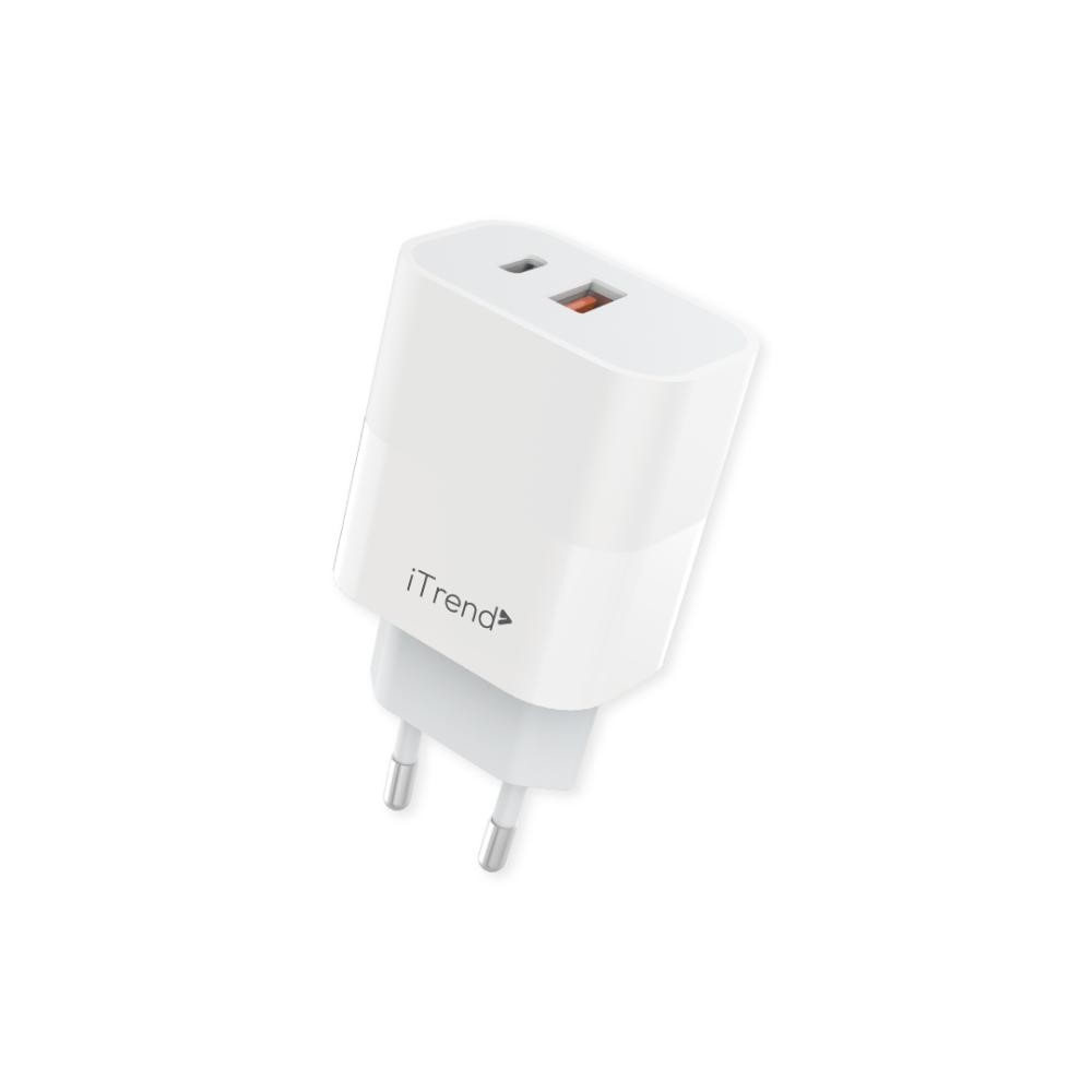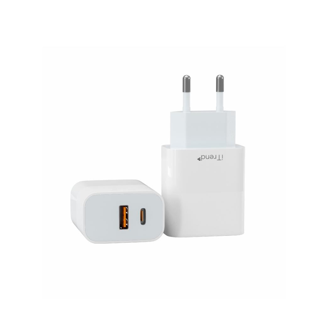 Carregador De Parede ITREND USB-A + USB-C 25W Quick Charge 3.0 PD Carregamento Rápido Branco