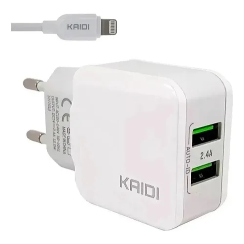 O carregador Kaidi KD‑301A é um modelo de parede compacto e funcional, especialmente indicado para usuários de dispositivos Apple. Ele acompanha um cabo Lightning de aproximadamente 1 metro, sendo ideal para iPhones, iPads e outros aparelhos com esse tipo de entrada. Com design discreto na cor branca, o carregador é leve e fácil de transportar, medindo cerca de 8 × 4,5 × 2,5 cm e pesando aproximadamente 60 gramas. O modelo é bivolt, operando entre 100 e 240 volts, com frequência de 50 a 60 Hz, e oferece uma saída de até 5V/2,4A (12W), distribuída entre duas portas USB, permitindo o carregamento simultâneo de dois dispositivos. Além da praticidade, o Kaidi KD‑301A também se destaca pela segurança, contando com proteção contra curto-circuito, sobrecarga, superaquecimento e sobretensão. Sua certificação pela Anatel garante conformidade com os padrões técnicos brasileiros, e sua construção com materiais resistentes ao calor reforça a confiabilidade no uso diário. Por essas características, o Kaidi KD‑301A é uma excelente escolha para quem procura um carregador eficiente, seguro e pronto para uso com produtos Apple. O carregador Kaidi KD-301A é compatível com qualquer dispositivo que carregue via entrada Lightning (o padrão da Apple), além de outros aparelhos que utilizem cabo USB padrão, desde que se use o cabo adequado. Veja a lista detalhada abaixo: 📱 Dispositivos Apple com entrada Lightning compatíveis: (Compatível diretamente com o cabo que acompanha o carregador) iPhones: iPhone 5, 5s, 5c, SE (1ª geração) iPhone 6, 6 Plus, 6s, 6s Plus iPhone 7, 7 Plus iPhone 8, 8 Plus iPhone X, XR, XS, XS Max iPhone 11, 11 Pro, 11 Pro Max iPhone SE (2ª e 3ª geração) iPhone 12, 12 mini, 12 Pro, 12 Pro Max iPhone 13, 13 mini, 13 Pro, 13 Pro Max iPhone 14, 14 Plus, 14 Pro, 14 Pro Max Obs.: iPhone 15 e modelos posteriores não são compatíveis com Lightning, pois usam entrada USB-C. iPads com entrada Lightning: iPad (4ª geração até 9ª geração) iPad mini (da 1ª à 5ª geração) iPad Air (1ª e 2ª geração) iPad Pro 9.7" e 10.5" (modelos com Lightning)