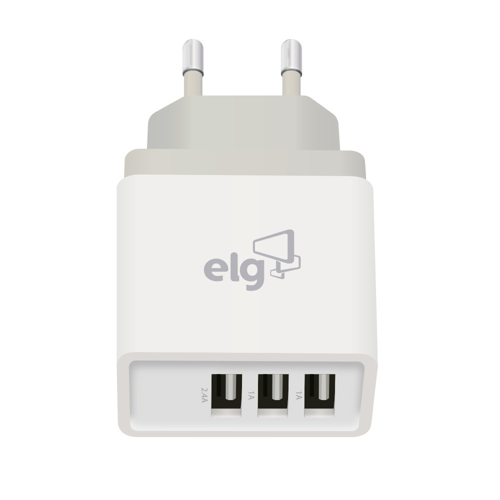 Velocidade, segurança e durabilidade: sua recarga com potência máxima. O Carregador de Parede Universal ELG WC3S foi projetado para oferecer praticidade, eficiência e segurança no seu dia a dia. Com três portas USB (Ultra High Speed Port), sendo duas de 1A e uma de 2.4A, ele entrega capacidade total de 3.4A, permitindo carregar rapidamente smartphones, tablets, GPS, câmeras digitais, MP3, MP4 e outros dispositivos compatíveis. Seu design moderno e compacto proporciona comodidade em qualquer ambiente, seja em casa, no escritório ou em viagens. Compatível com entradas bivolt automáticas (127–220V), garante praticidade e versatilidade em diferentes situações. Produzido em polímero antichamas com circuito impresso de alta qualidade, o WC3S conta com conectores de alta eficiência e a tecnologia Safety First Tech, que assegura uso seguro e inteligente, com proteção contra sobreaquecimento e curto-circuito. Na embalagem, você recebe 1 carregador de parede ELG WC3S, pronto para uso imediato. Características Técnicas Materiais: Polímero antichamas e circuito impresso Compatibilidade: Dispositivos que permitam recarga via porta USB Voltagem de Entrada: AC 127–220V / 50–60Hz / 0,15A (máx.) Saídas: Porta USB 1: DC 5V – 1A Porta USB 2: DC 5V – 1A Porta USB 3: DC 5V – 2.4A Capacidade Total: 3.4A Proteções: Contra sobreaquecimento e curto-circuito Extras: High Speed Ports, Boost Extra, Safety First Tech, bivolt automático Cor: Branca IMPORTANTE :: As imagens dos produtos são meramente ilustrativas e podem apresentar pequenas variações de cor ou acabamento, conforme iluminação, resolução do monitor ou percepção visual. :: Objetos de decoração e itens adicionais exibidos nas fotos não acompanham o produto. :: Todas as informações técnicas e características dos produtos são de responsabilidade da marca ELG, podendo sofrer alterações sem aviso prévio. :: Os pedidos são sempre enviados de forma completa. Caso haja produtos com prazos de postagem diferentes, será considerado o maior prazo para envio do pedido. :: Valores e condições podem ser alterados sem aviso prévio e são válidos exclusivamente para compras realizadas neste site. :: A garantia ELG é limitada ao produto e não cobre danos ocasionados por mau uso, instalação incorreta ou manuseio inadequado. SOBRE A ELG: A ELG é uma empresa brasileira que preza pela alta qualidade. Nossa política é aplicada em toda linha de produtos e garante que os consumidores possam adquirir itens que foram amplamente testados.