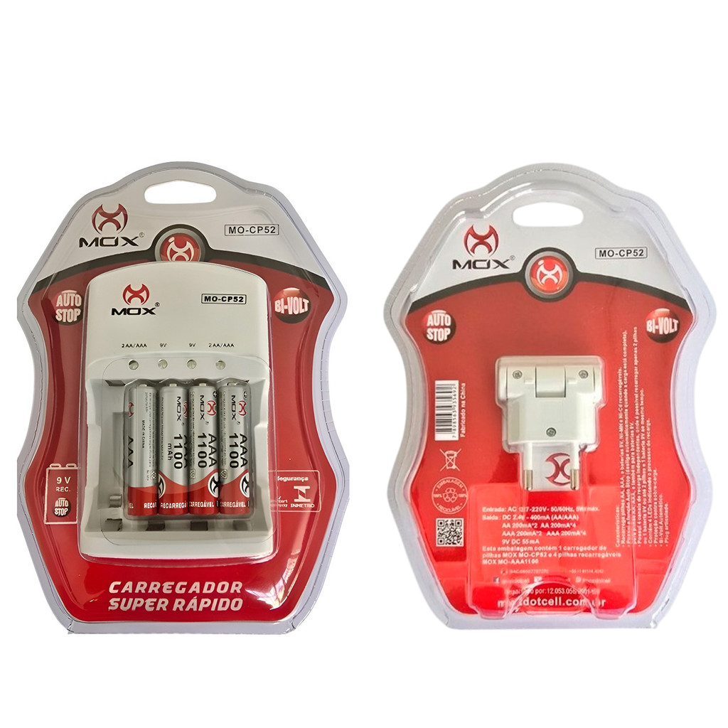 | Carregador De Pilhas Mox Com 4 Pilhas Recarregáveis AAA 1100 mAh Bi... este produto | R$ 69,90 | 50% | 5.0/5 | 12 |