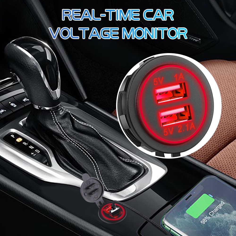 Carregador Duplo USB Para Carro 5V 3.1A 12V Com Painel Adaptador De Energia À Prova D'água Tomada Motocicleta De Barco Veículos
