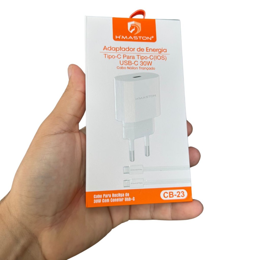 Carregador iPhone 15 16 Tipo-C Turbo Iphone 30W + Cabo Tipo-C para Tipo-C -H'Maston CB23