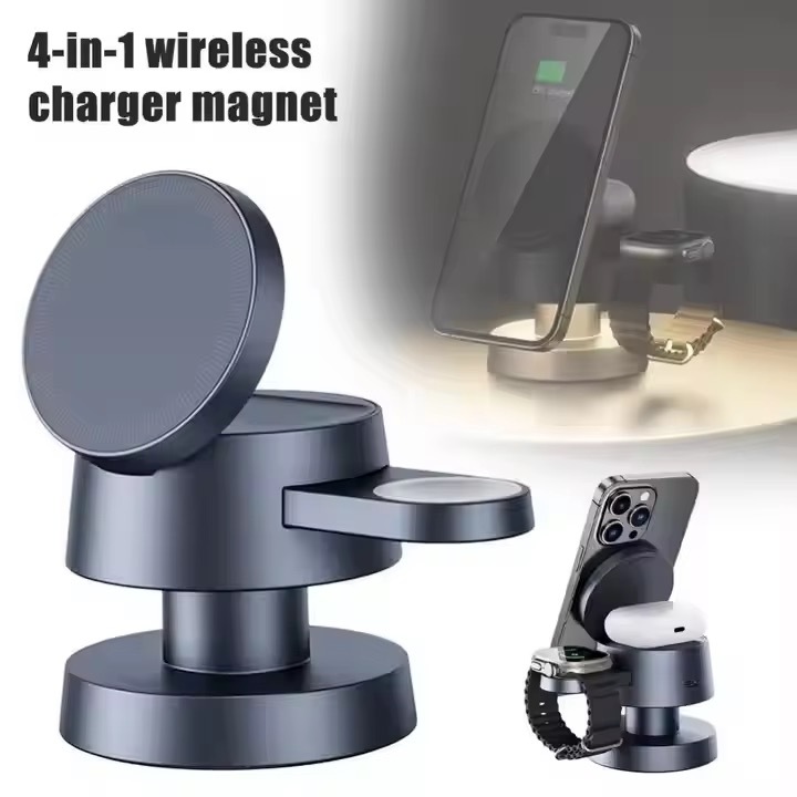 Carregador Magnético Dock 3 em 1 Ajustável Magsafe Luz Led P/ Celular Smartwatch