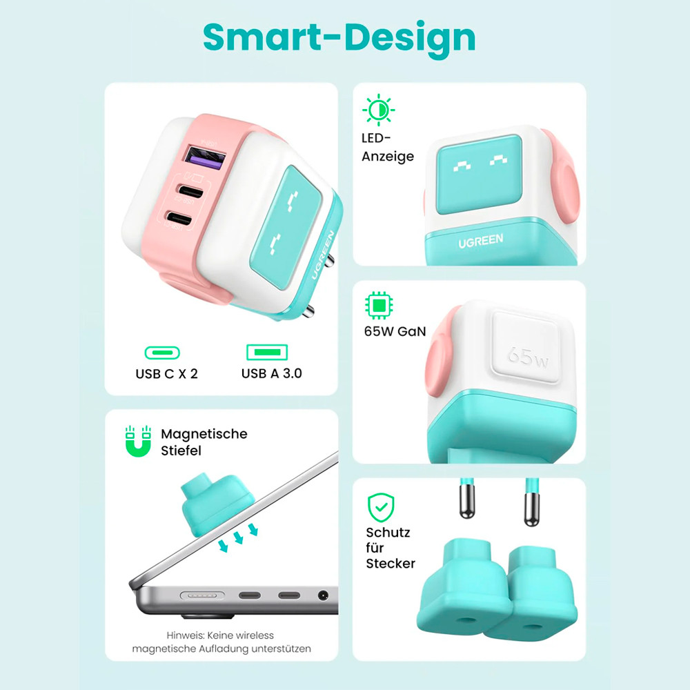 Carregador Parede Ugreen Portas Usb-A/C Máximo 65W Azul-Rosa, Design Robot, Ampla Compatibilidade 1. Capacidade Elevada e Versátil: O Carregador Robot Ugreen é uma solução de carregamento poderosa e versátil, equipada com uma porta USB-A e duas portas USB-C, proporcionando até 65W de potência máxima. É ideal para alimentar rapidamente uma variedade de dispositivos, desde smartphones até laptops. 2. Design Moderno em Azul-Rosa: Com um acabamento elegante na cor Azul-Rosa, este carregador não só é funcional, mas também um acessório estético para qualquer espaço. Ele adiciona um toque de cor e design contemporâneo ao seu escritório ou estação de trabalho em casa. 3. Tecnologia de Carregamento Rápido: As portas USB-C suportam o carregamento rápido, permitindo que você recarregue seus dispositivos em velocidades significativamente reduzidas em comparação com carregadores padrão. Este recurso é perfeito para quem precisa de eficiência e rapidez. 4. Portabilidade e Conveniência: Compacto e leve, o Carregador Robot Ugreen é fácil de transportar e usar em diferentes locais. Seja em casa, no escritório ou em viagens, ele garante que você sempre terá acesso a uma solução de carregamento rápido. 5. Segurança Avançada: Com múltiplas proteções incorporadas, este carregador protege seus dispositivos contra sobrecarga, sobretensão e superaquecimento. Assim, você pode ficar tranquilo sabendo que seus dispositivos estão sendo carregados de maneira segura e eficiente. Garantia 90 dias
