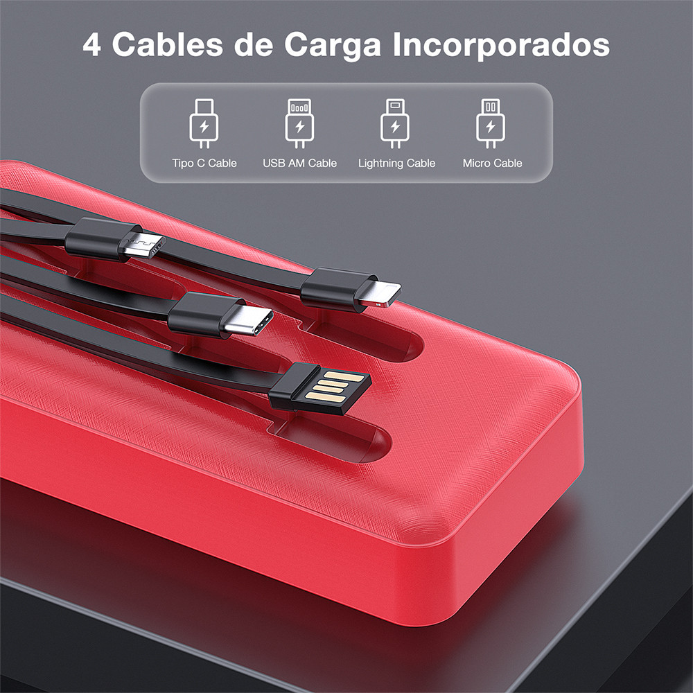 Carregador Portátil 1Hora Power Bank com Cabos Vermelho
